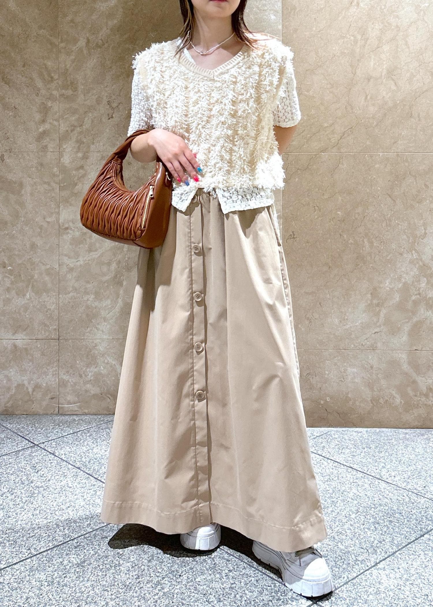 VIS【WEB限定】フロントボタンフレアスカートベージュ / F¥3,295レビューハリ感のある生地のボリュームタイプのスカートです。