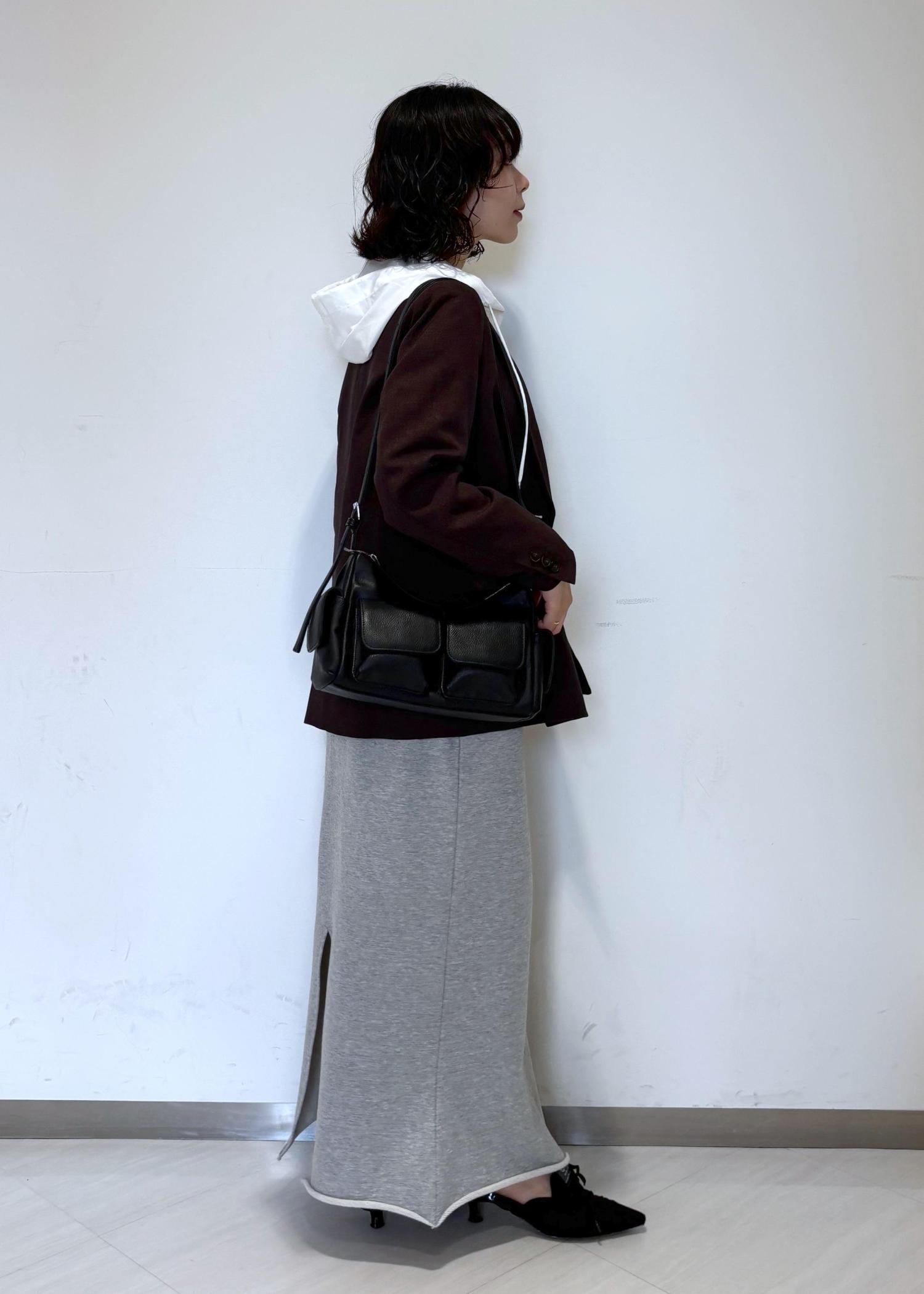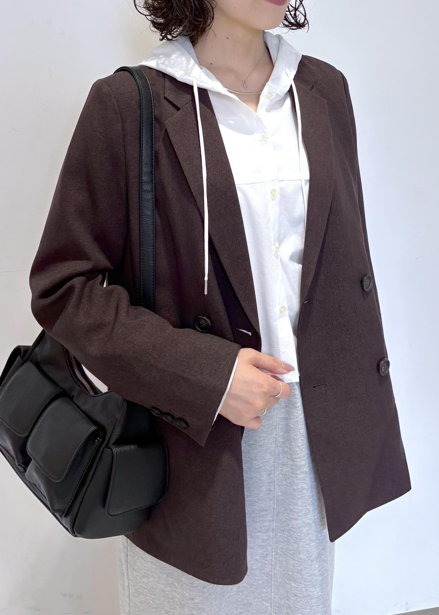 ブラウンのジャケット×スウェット素材スカートが秋のムードを先取りしてくれますჱ̒ ֊ ̫ ֊)