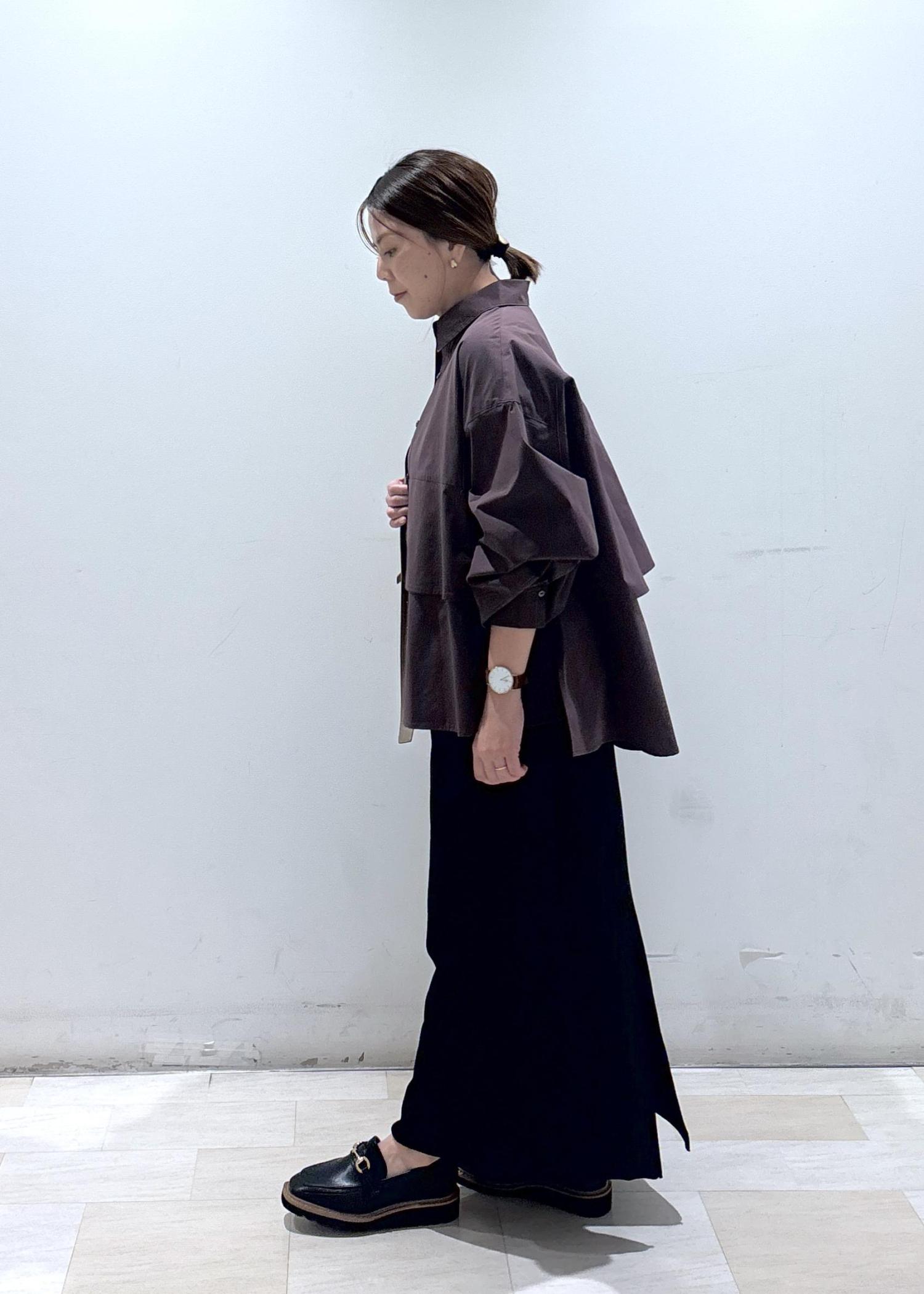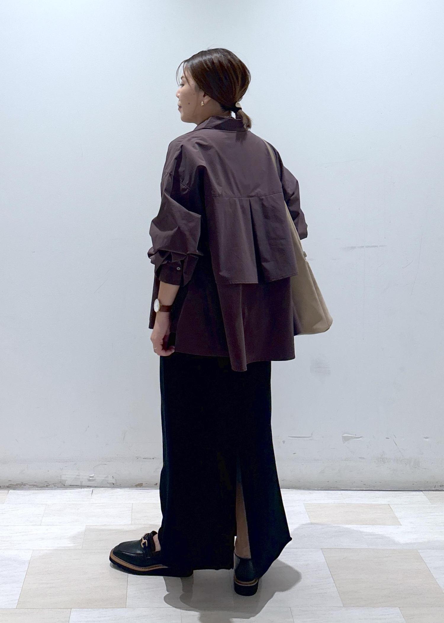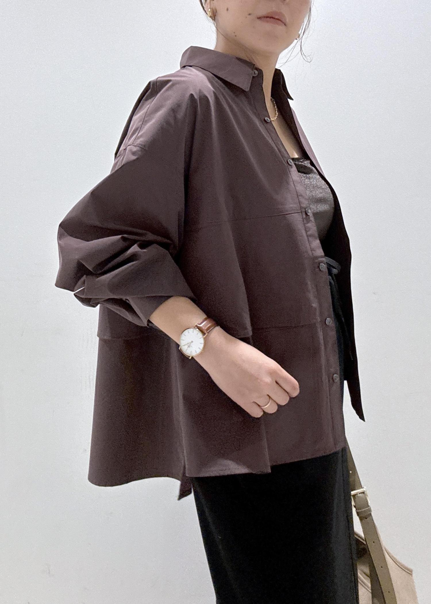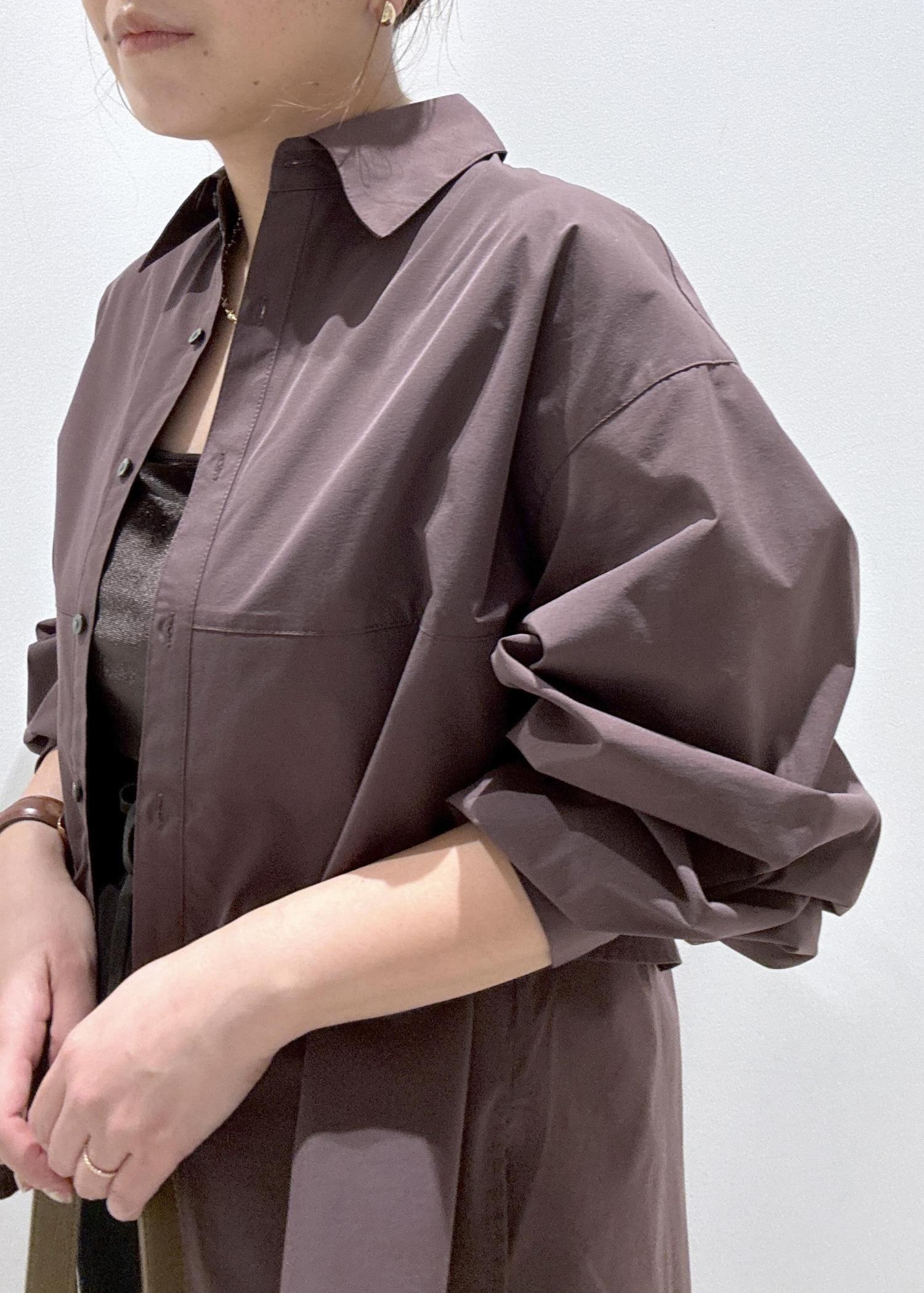 ハリ感のある生地で、オーバーサイズシルエットなので暑い時期には羽織としてもお使いいただけます。