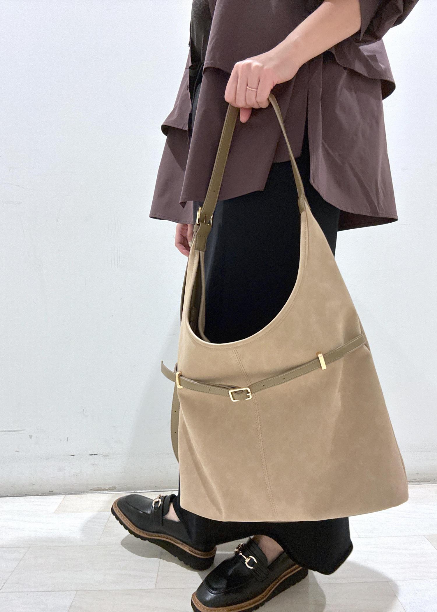 VIS【A4収納】フロントベルトソフトショルダーバッグベージュ系 / F¥5,535レビューA4や13インチのノートパソコンも収納できる大容量トートバッグ。