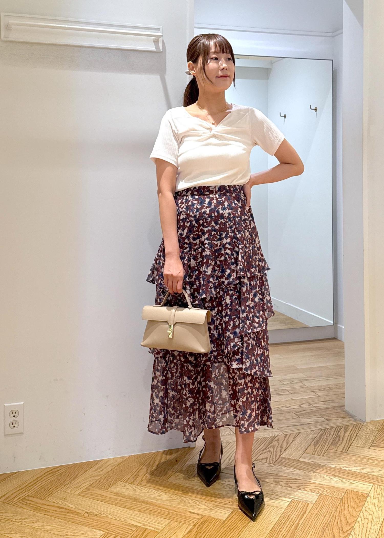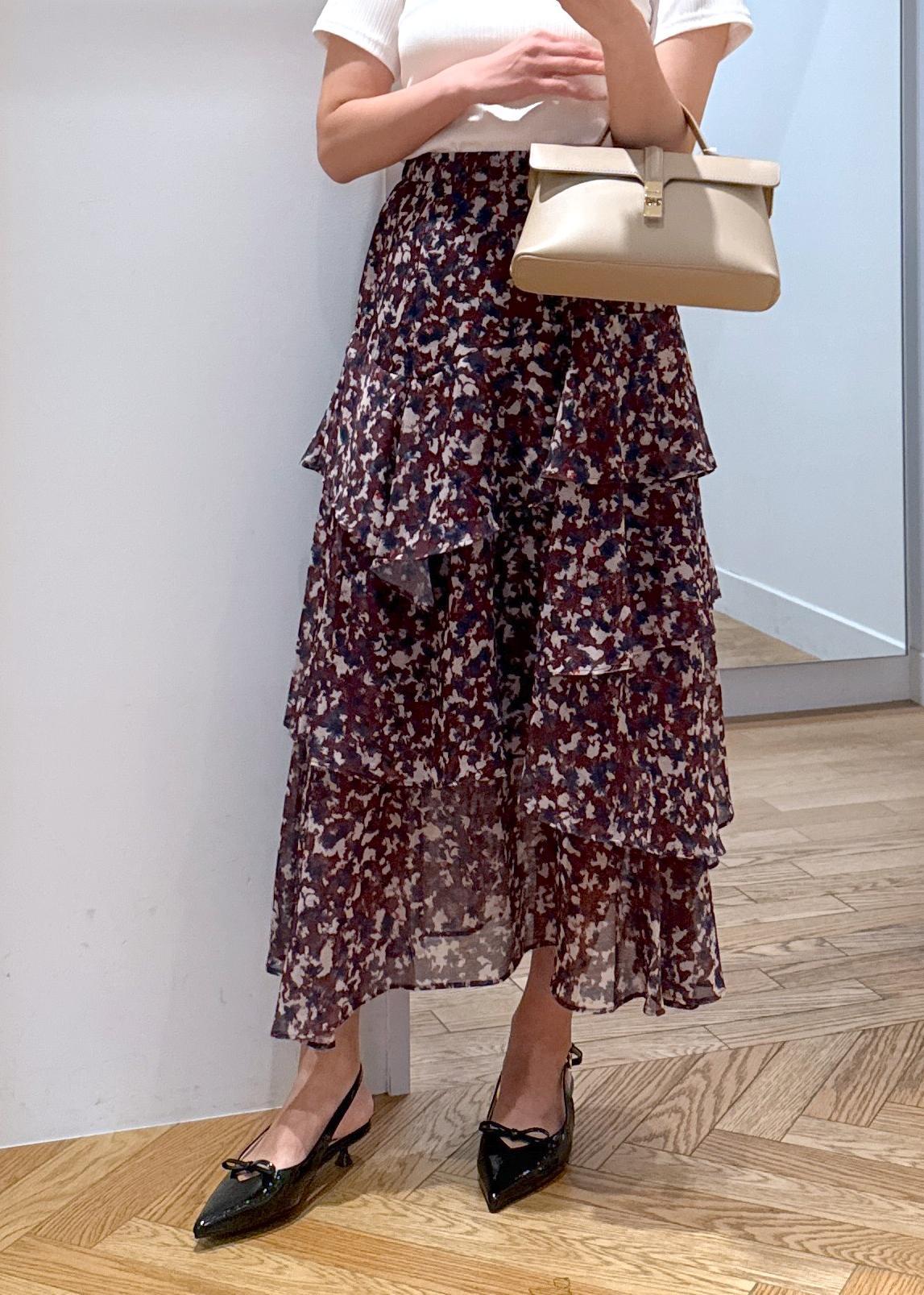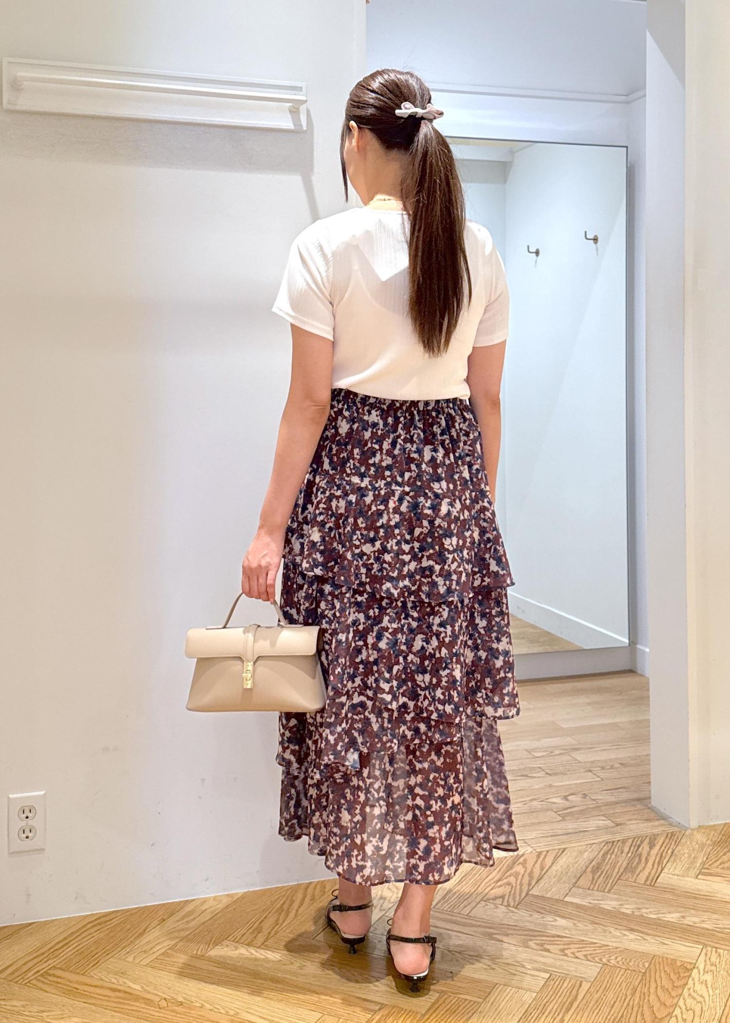 VIS花柄アソート楊柳ティアードスカートブラウン系 / F¥4,613レビュー身長161cmで足首くらいの丈感です。