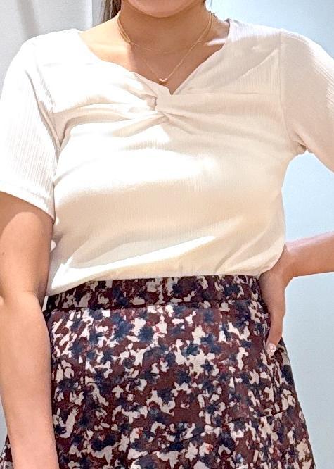 ねじりリボンが可愛いカットソーで大人カジュアルな雰囲気にしました。