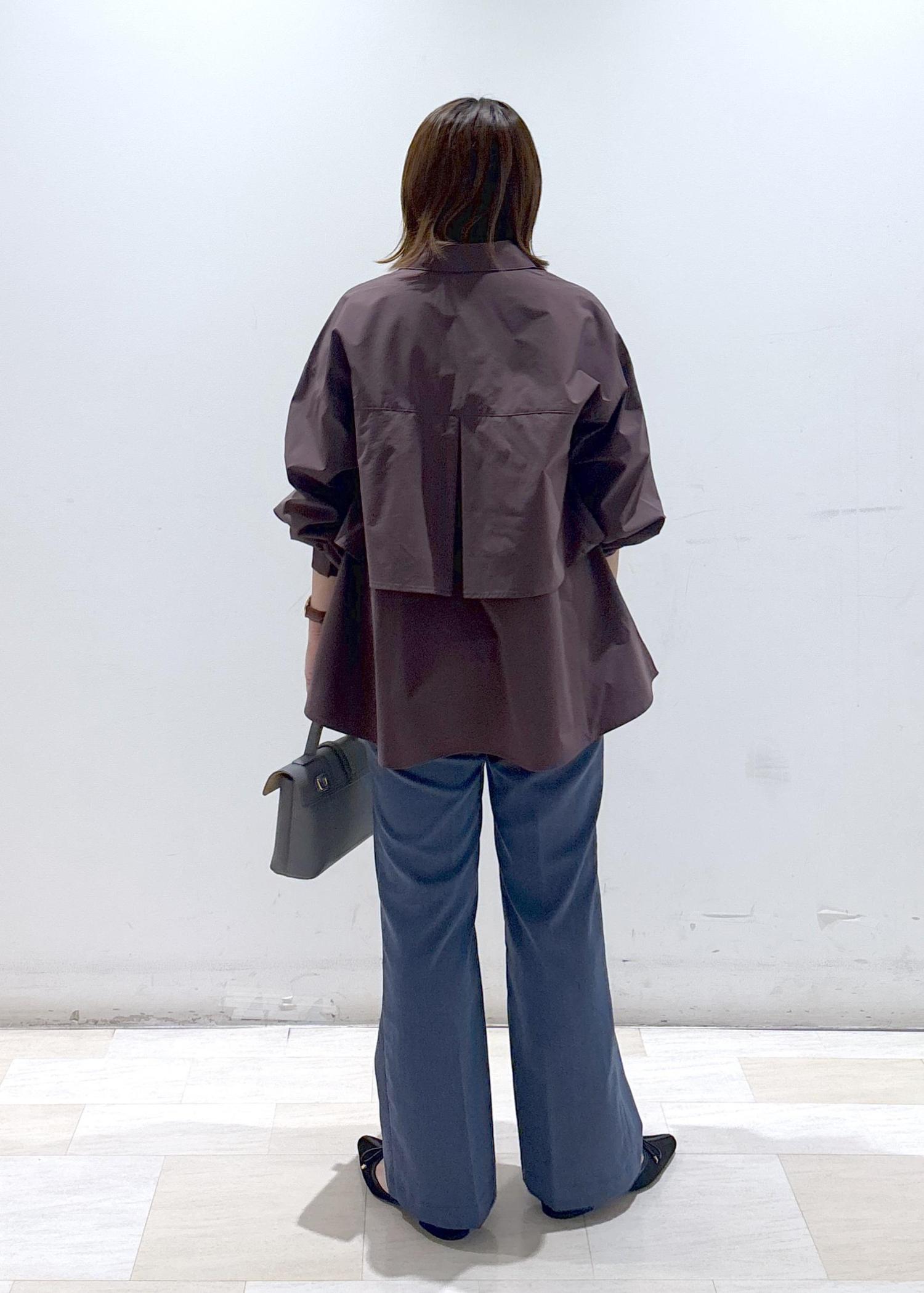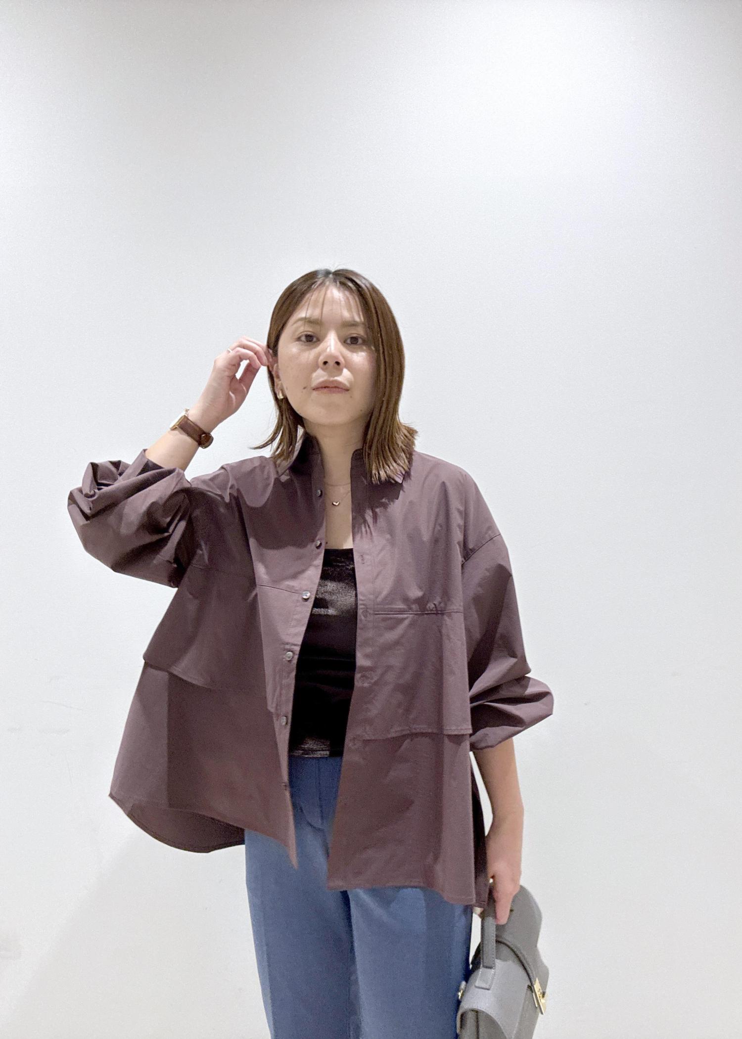 ハリ感のある生地で、オーバーサイズシルエットなので暑い時期には羽織としてもお使いいただけます。