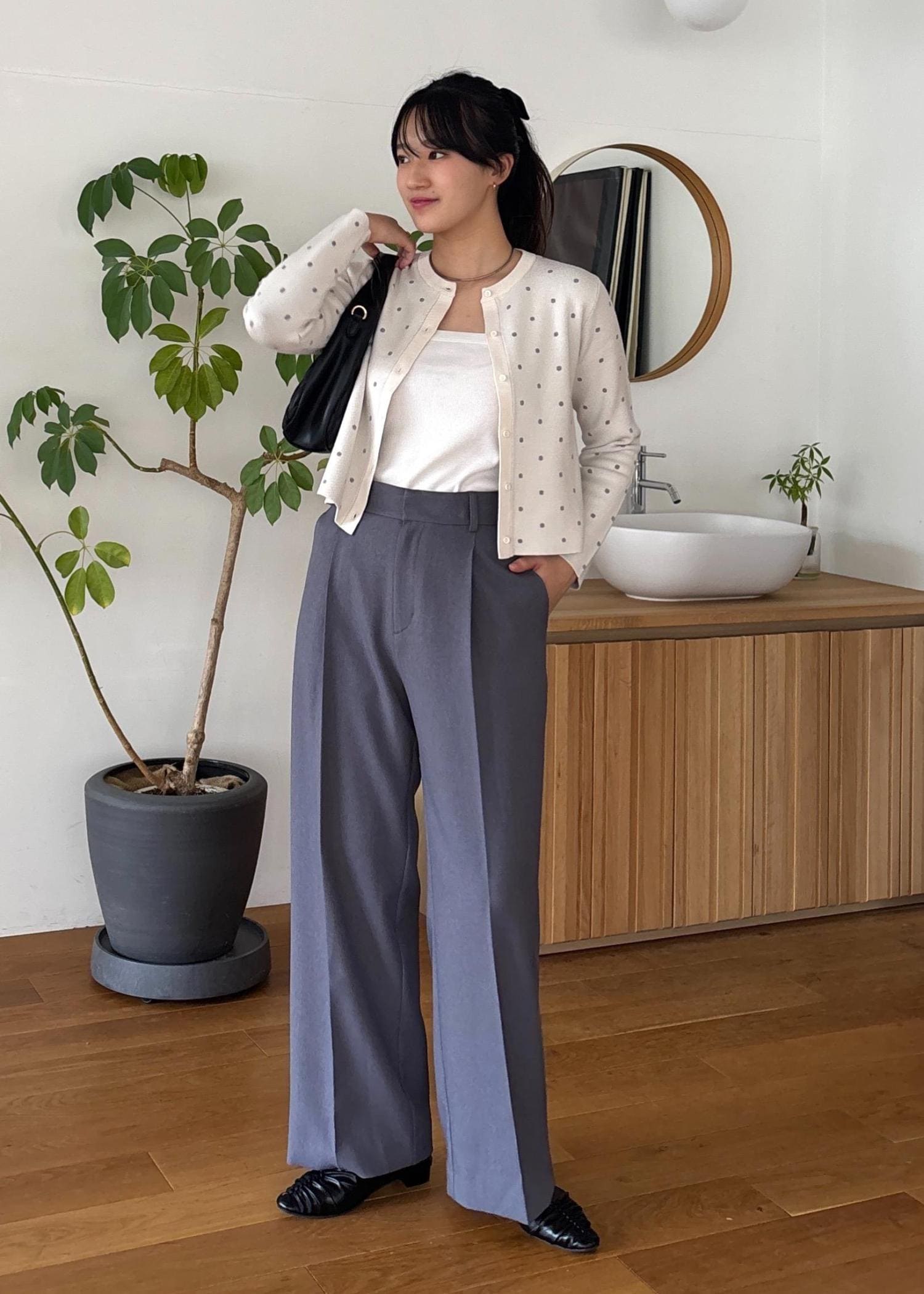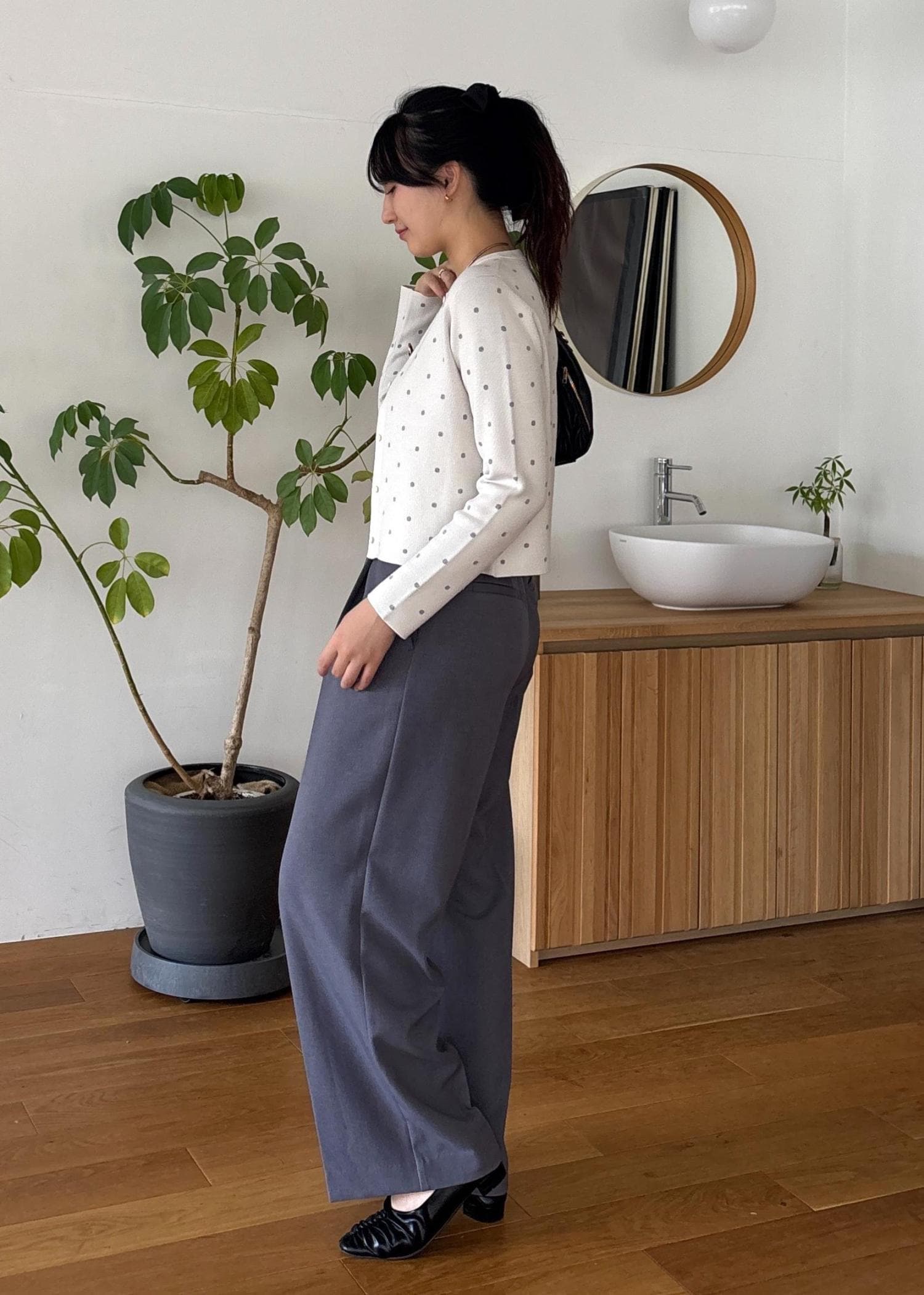 広がりすぎないワイドシルエットで、オンオフ着回せます◎