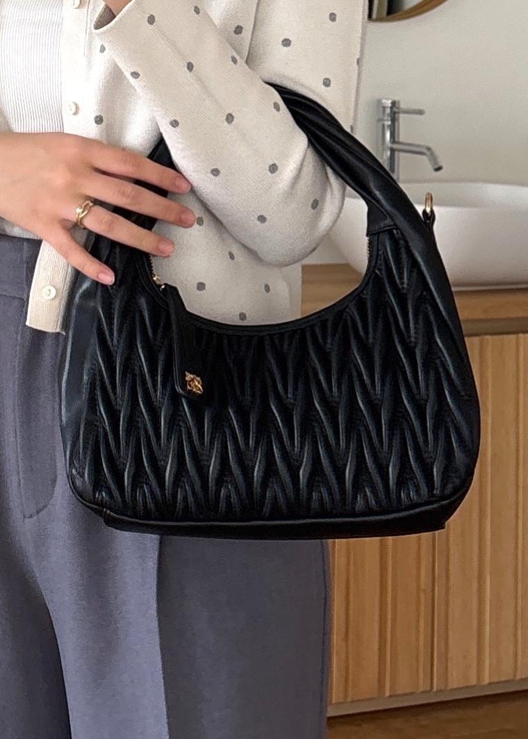 VIS【2WAY】ねじりハンドルキルティングバッグブラック / F¥6,327レビュー丸みのあるシルエットとねじりハンドルがポイント!