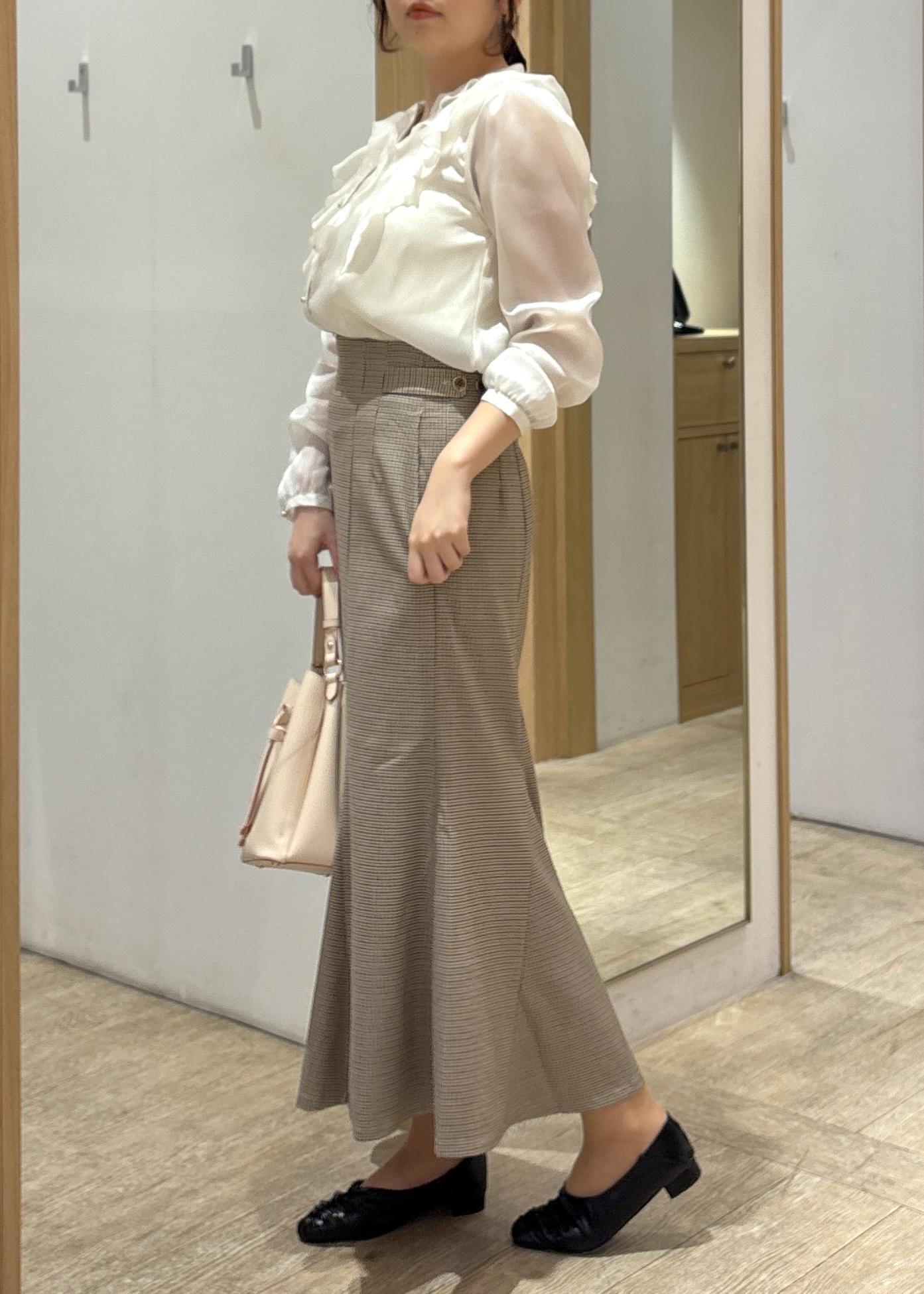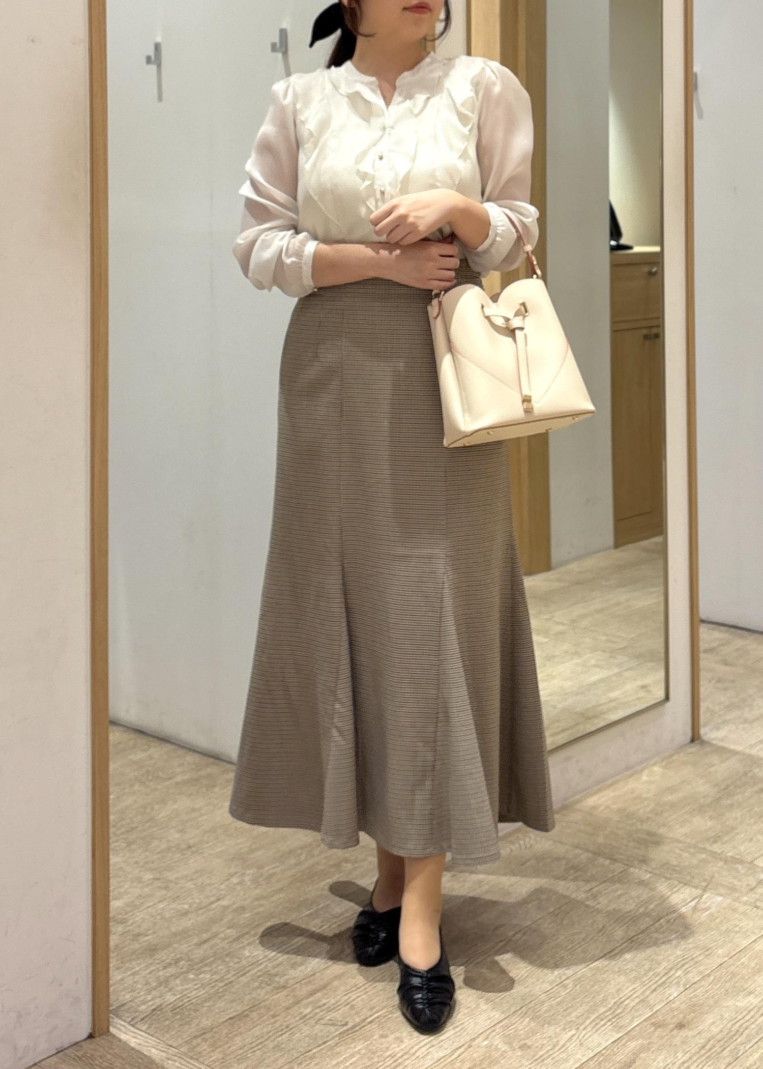 VIS美easyウーリッシュマーメイドスカート/セットアップ対応・イージーケアベージュ系 / L¥6,589レビューブラウン系のチェック柄マーメイドスカート。タイトに入りつつ裾が広がるラインで、骨格ストレートの方にも似合いやすく、体のラインをきれいに見せてくれます。