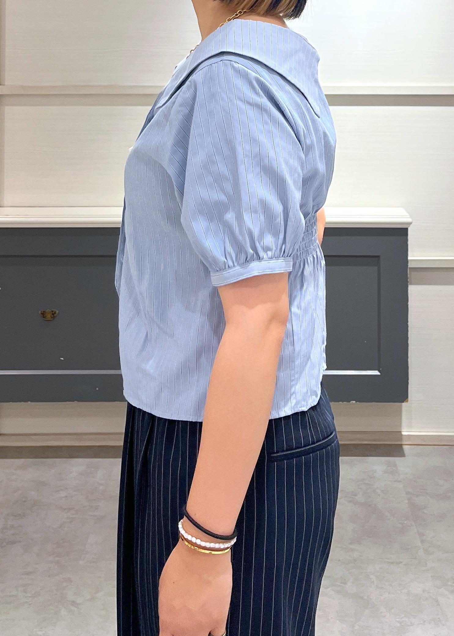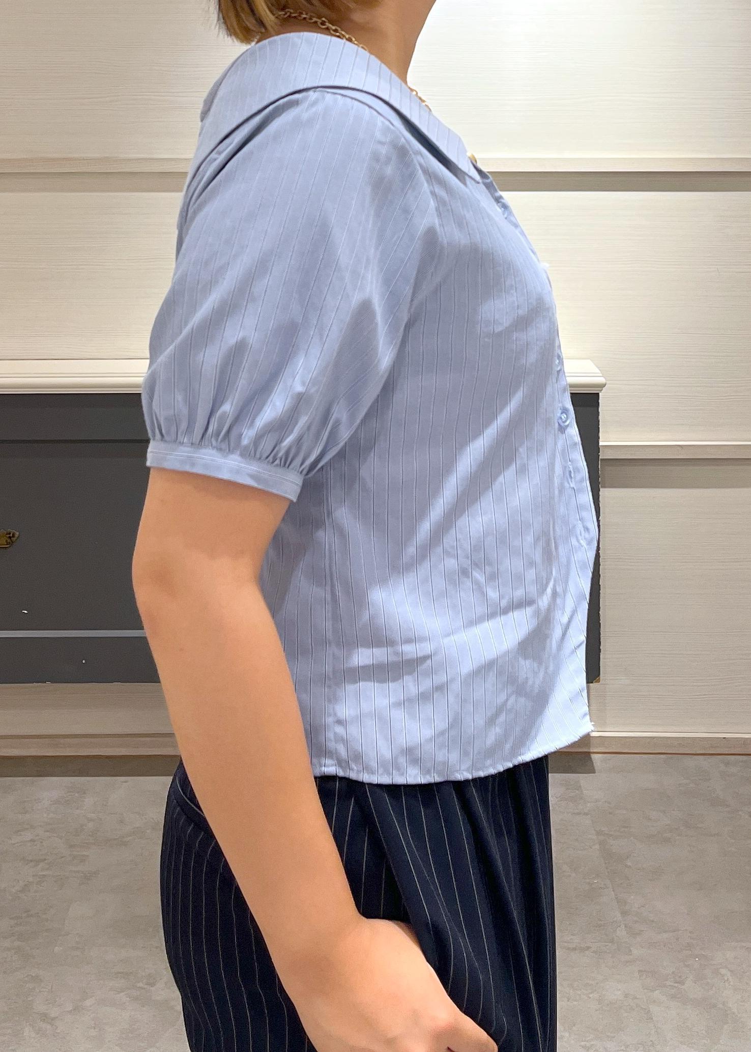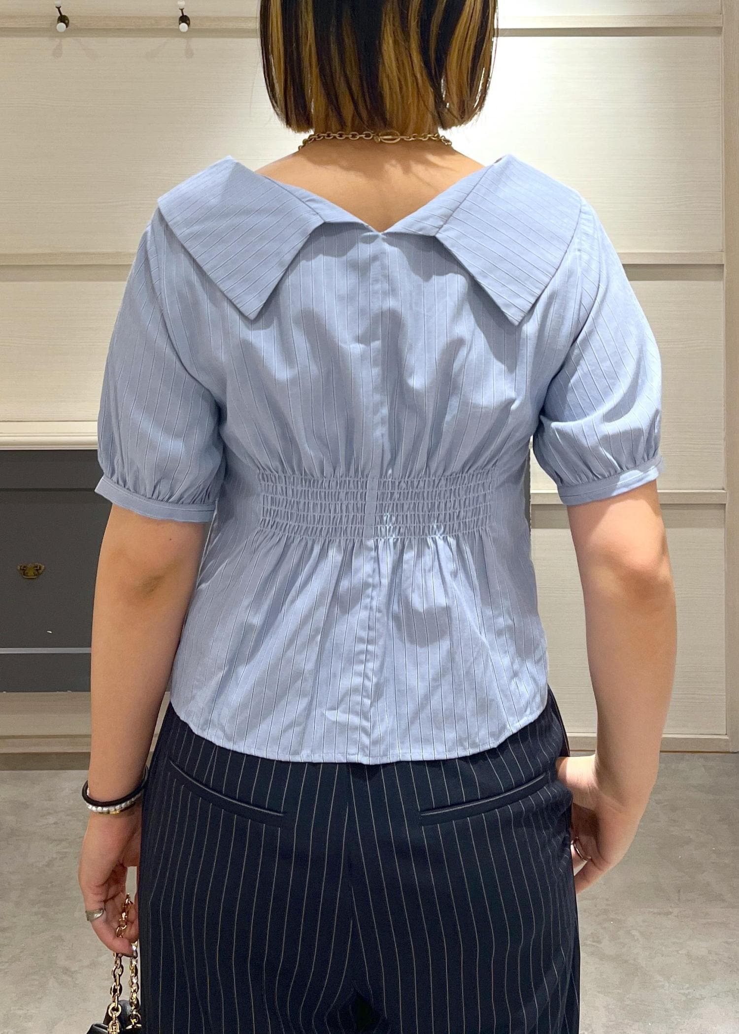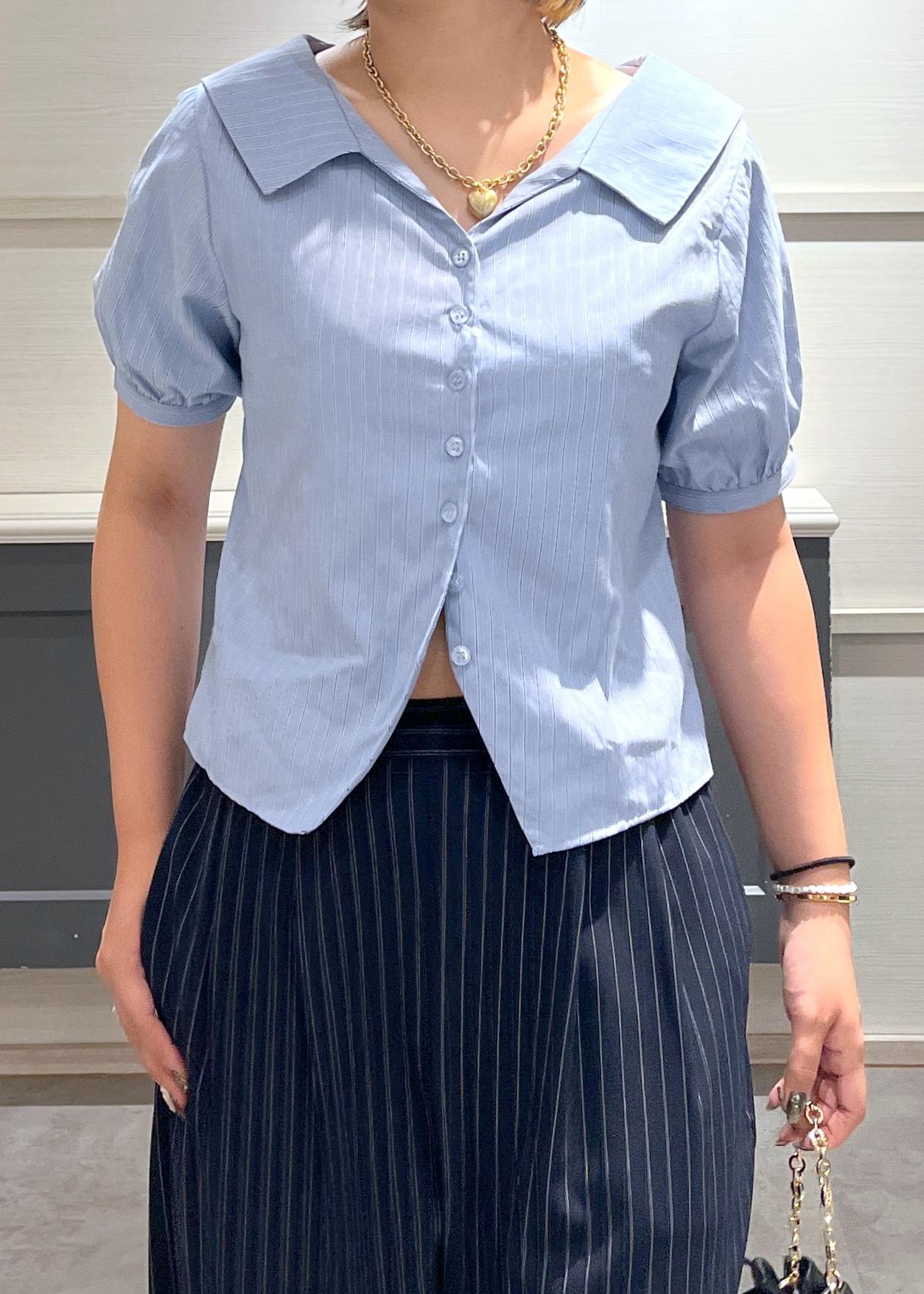 VISビックカラーシャツブラウスブルー / F¥3,953レビュー鎖骨ラインが見えるので