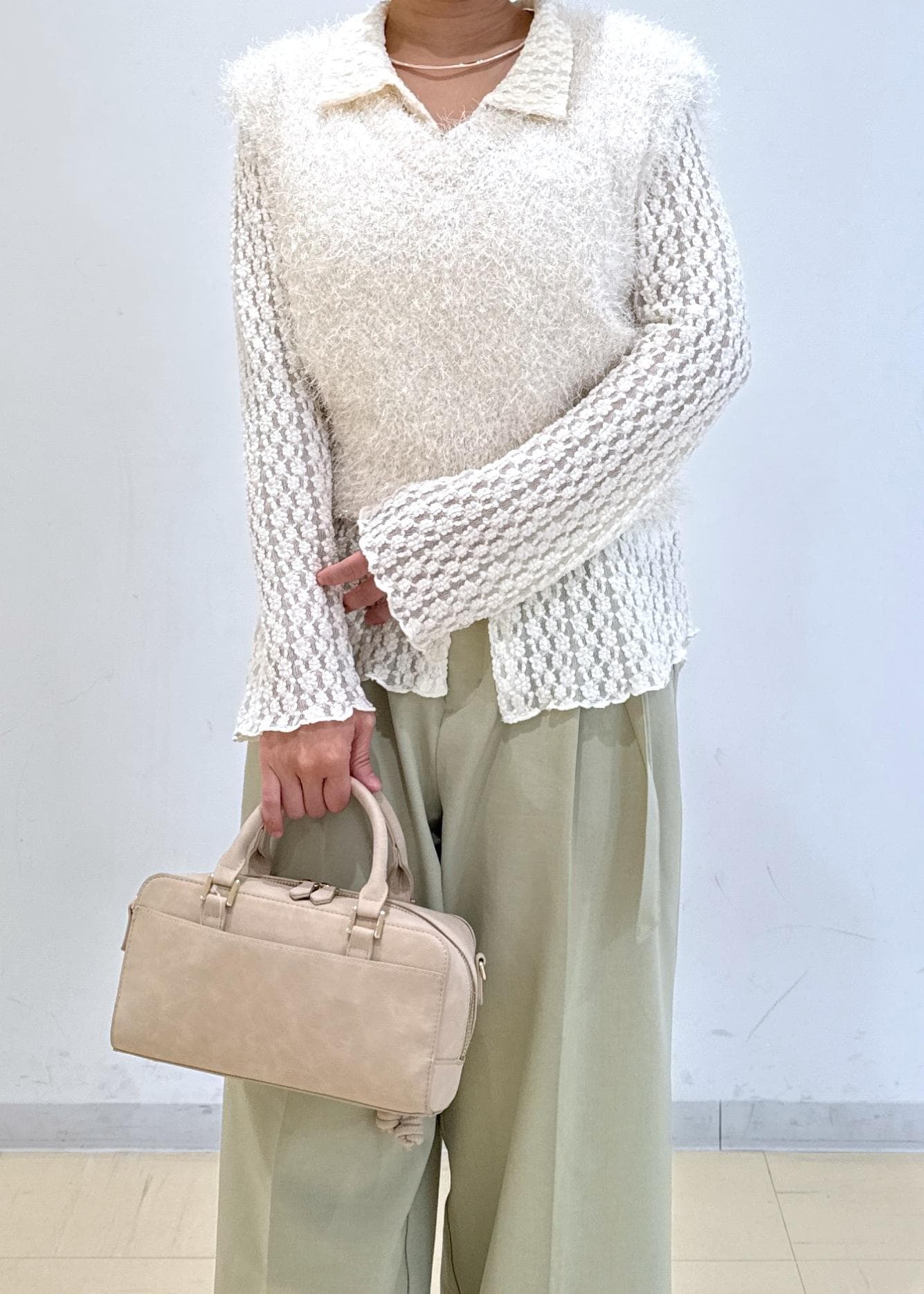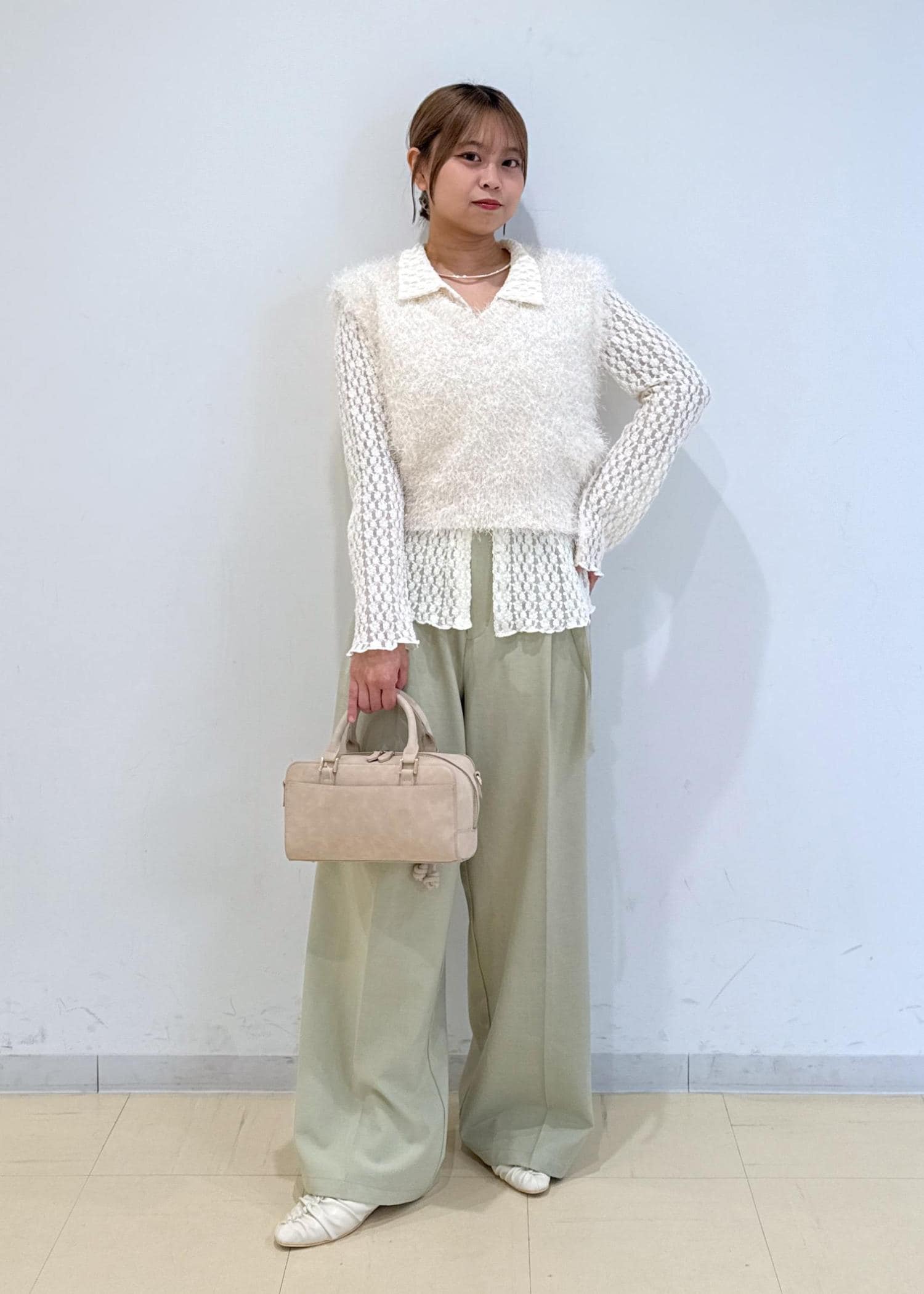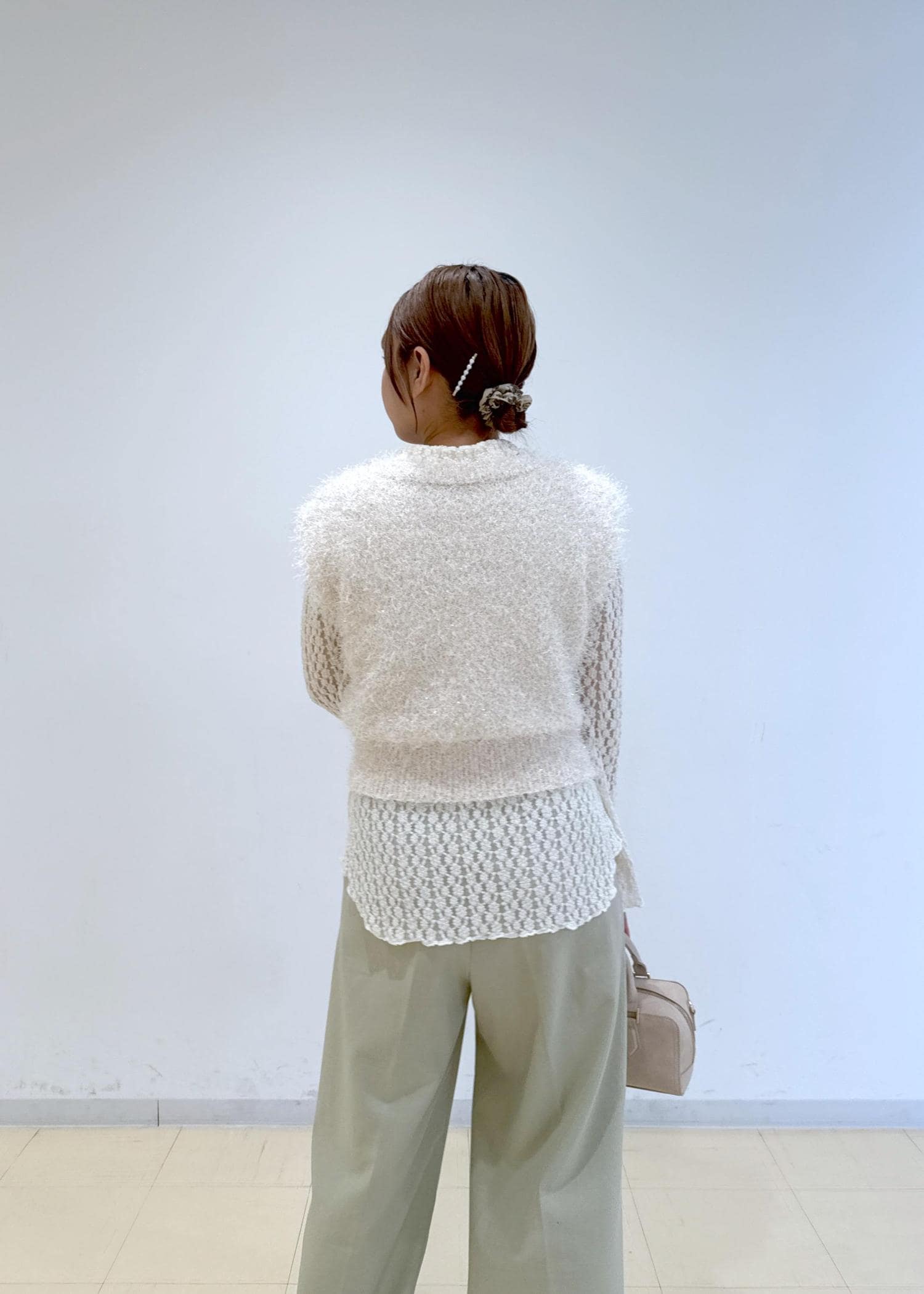 レースのトップスにシャギーのトップスを合わせたレイヤードコーデにしました♪