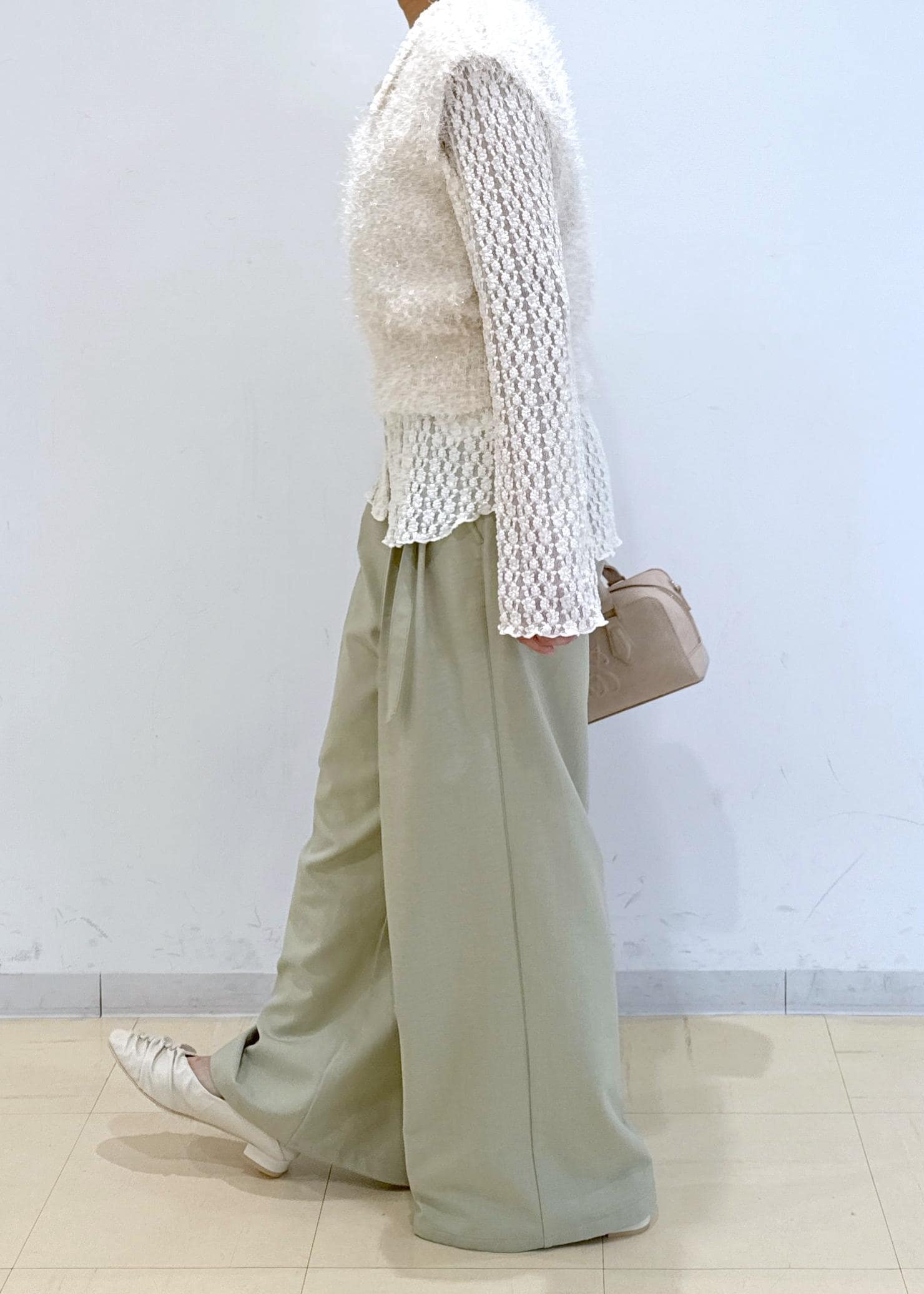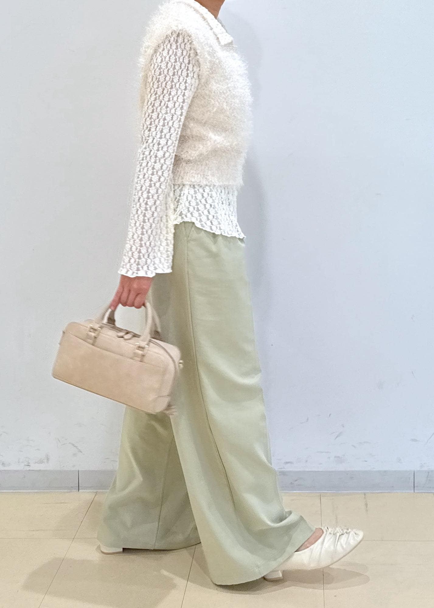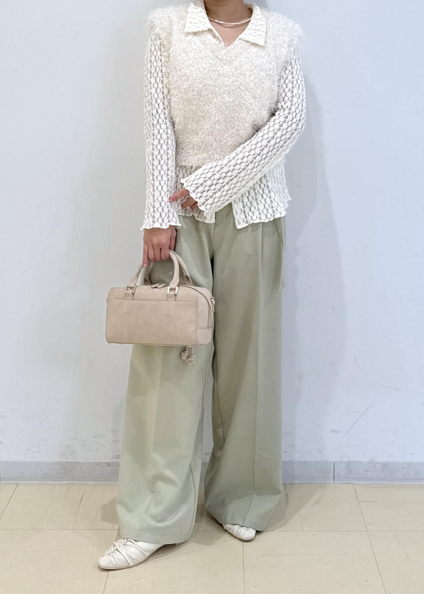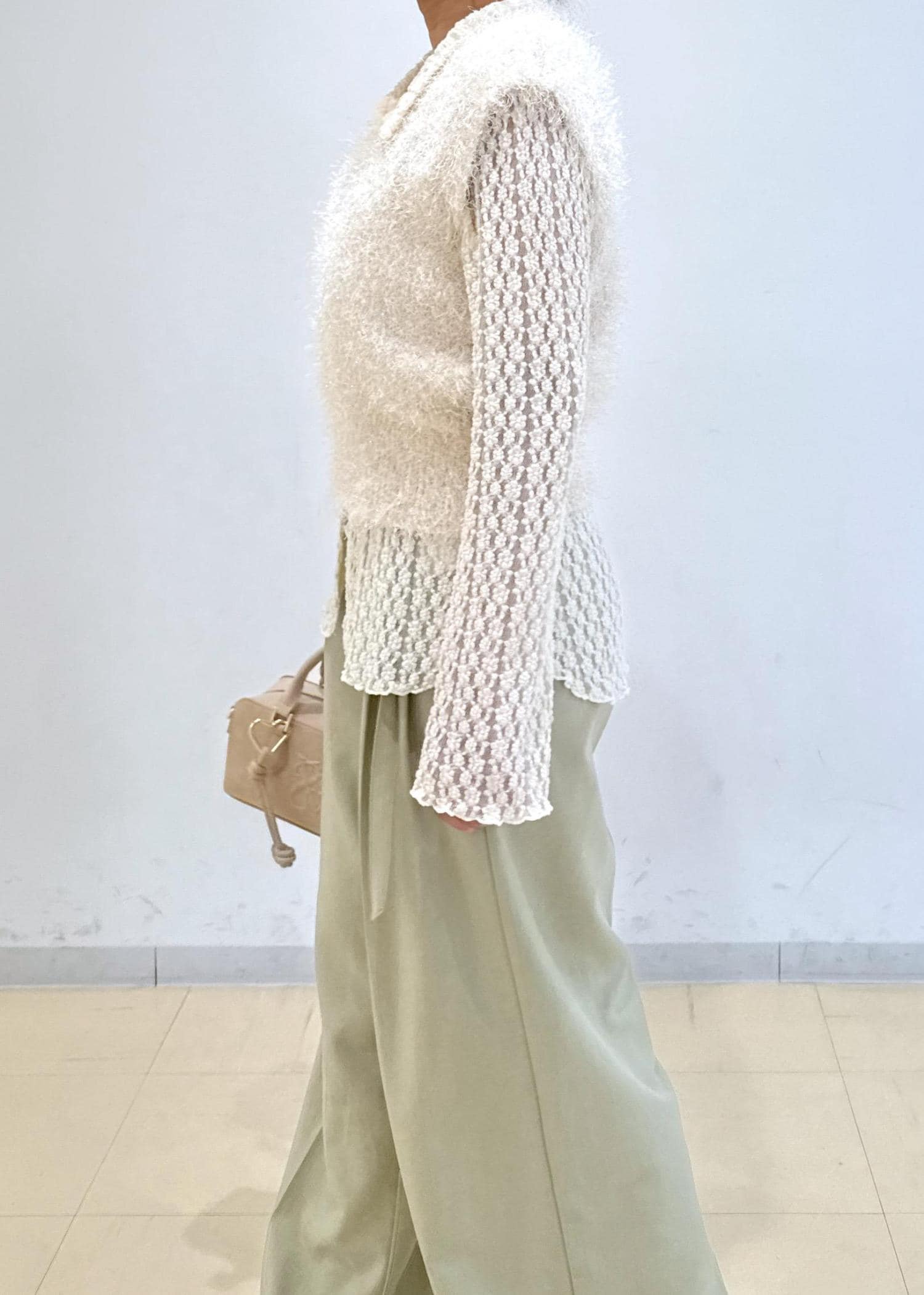 レースのトップスにシャギーのトップスを合わせたレイヤードコーデにしました♪
