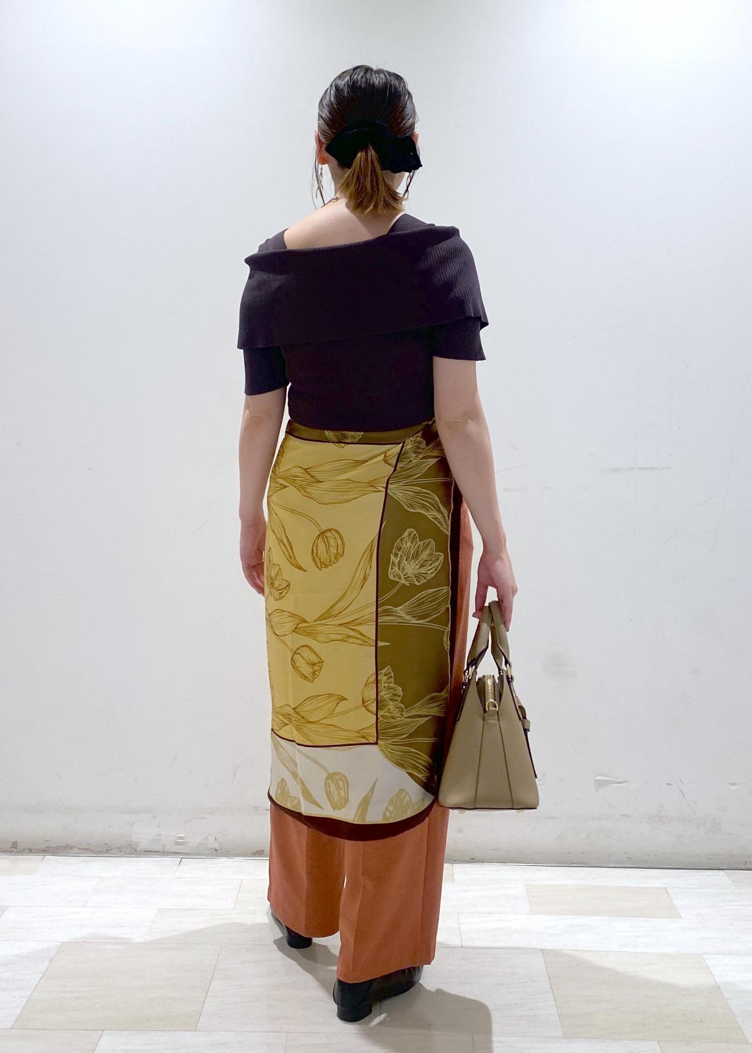 VISチューリップ柄スカーフ90×90cmブラウン系 / F¥2,189レビュー大判ストールなので