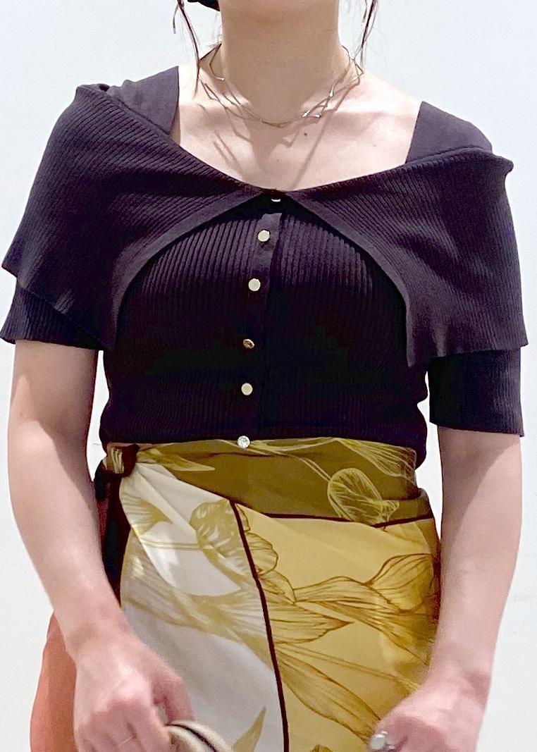 VISビックカラーオフショルハーフスリーブニットチャコール / F¥2,963レビュー少し大きめな衿が特徴のオフショルニットです!