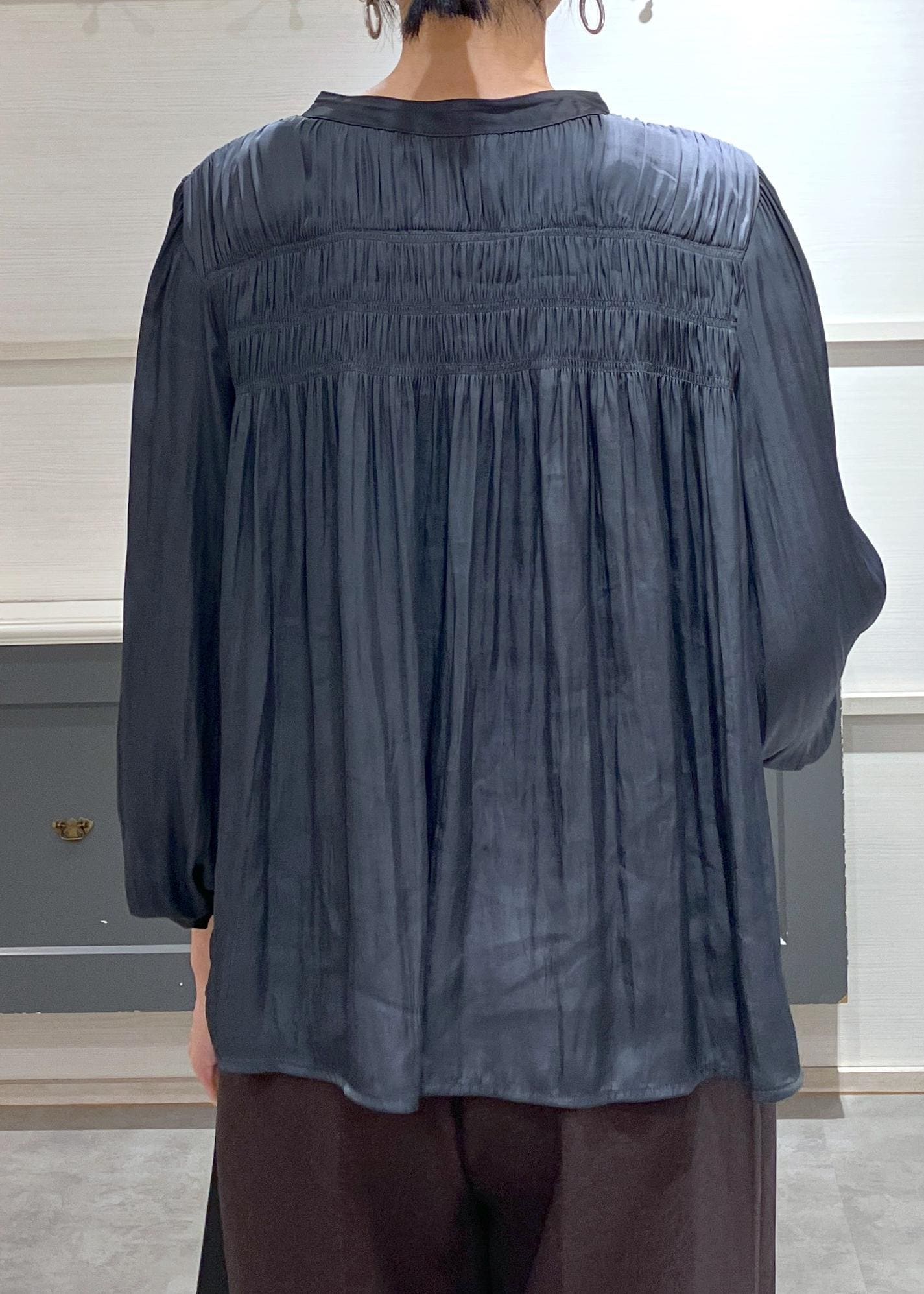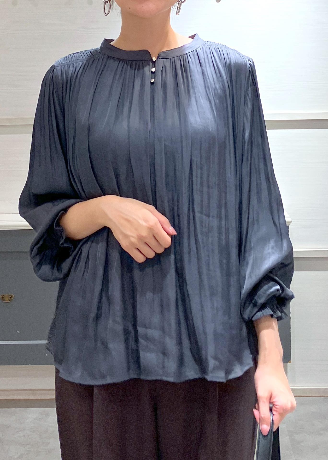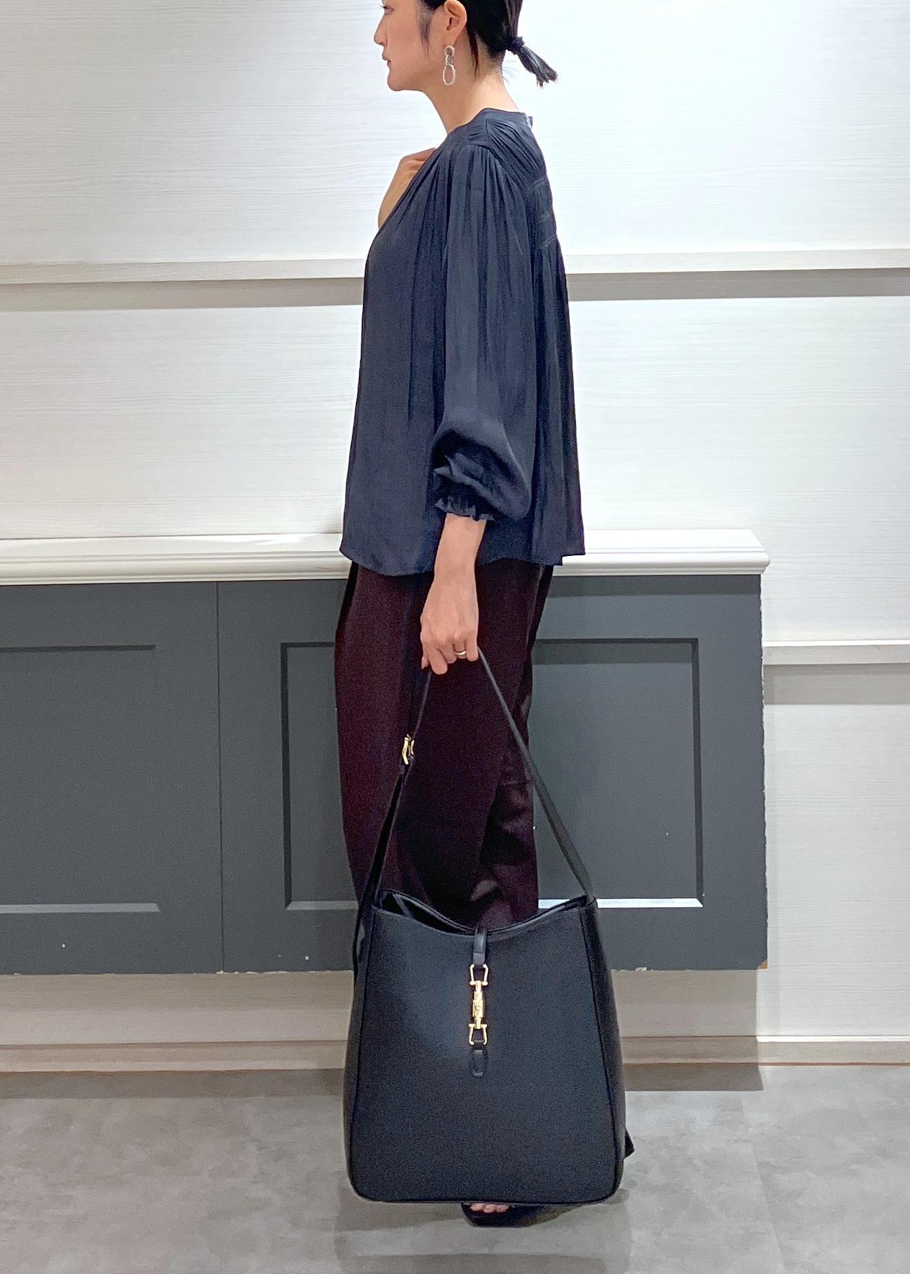 デザインに特徴のあるシャーリングブラウスはインしたくなる所をあえてインせずアウトでゆるっと着てみました♩