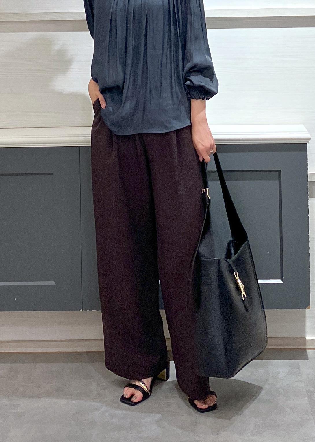 シャーリングブラウス×ウーリッシュワイドパンツ