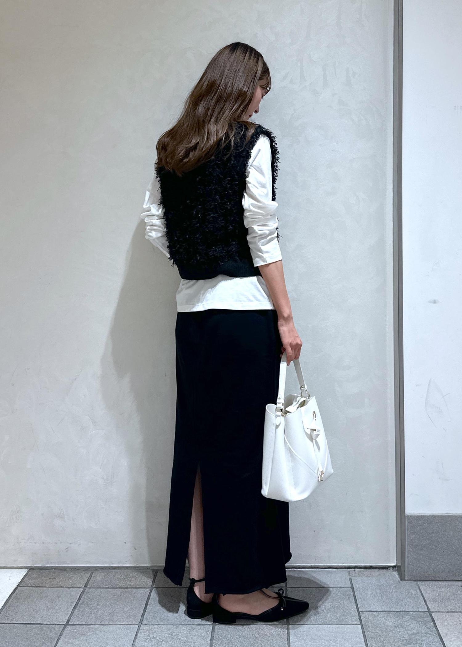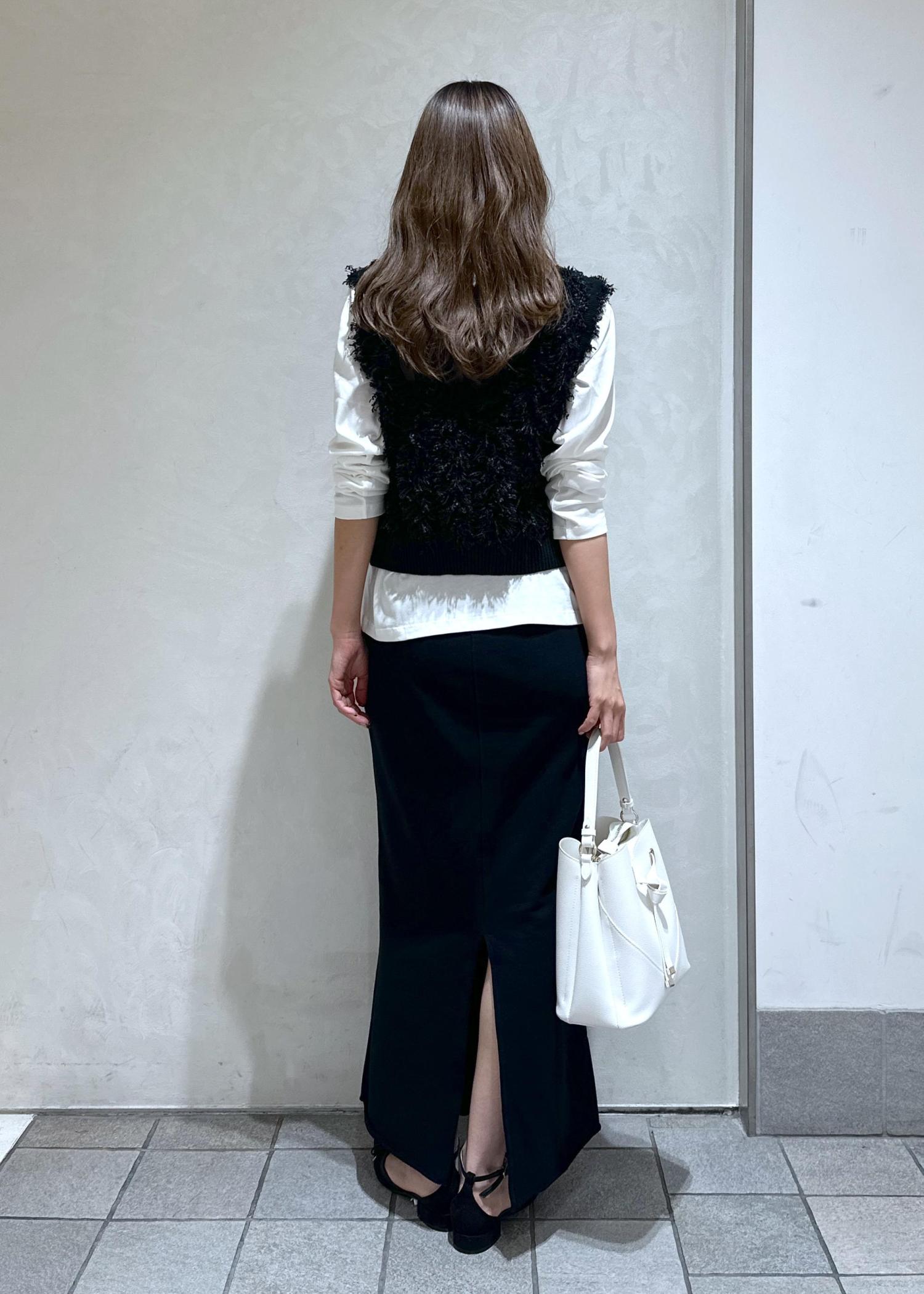 VISミニ裏毛ナロースカートブラック / F¥5,489レビュー165cmの私が着用してしっかりロング丈になりました!シルエットがすごく綺麗です!合わせ方次第でキレイめや甘めにもコーディネートできます◎スリットも入っていて歩きやすいです!