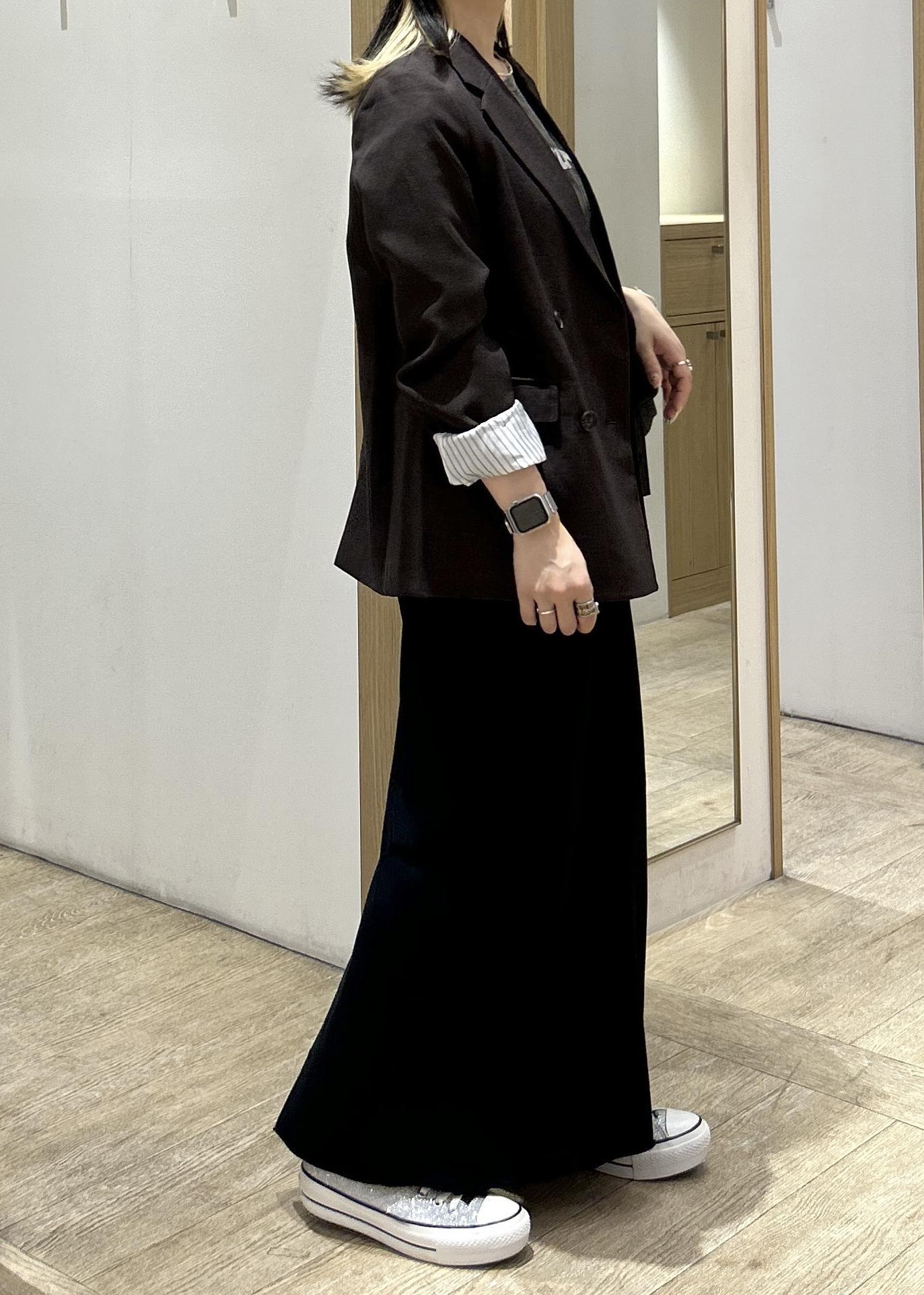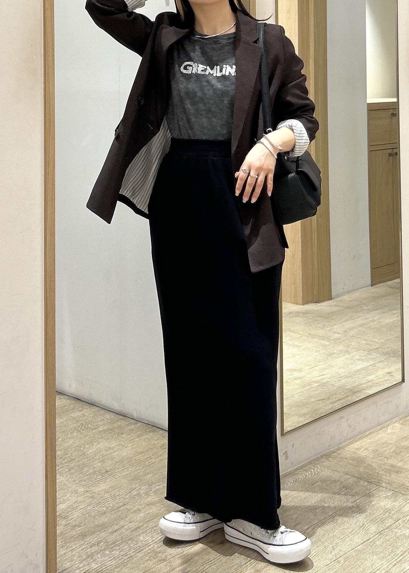 正面から見た時に腰回りのラインが少し出やすいので、インスタイルよりもアウトスタイル、もしくは羽織り合わせが好みでした◎ -