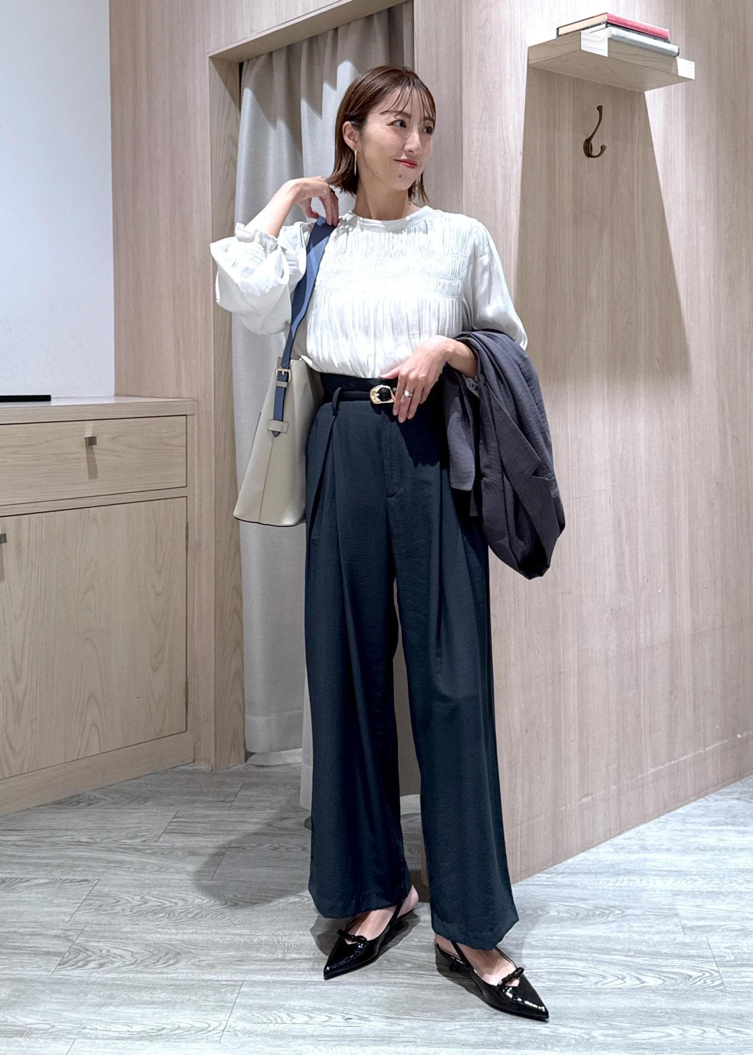 ブルベさんにオススメな、チャコールグレーでまとめた秋のオフィスコーデです!