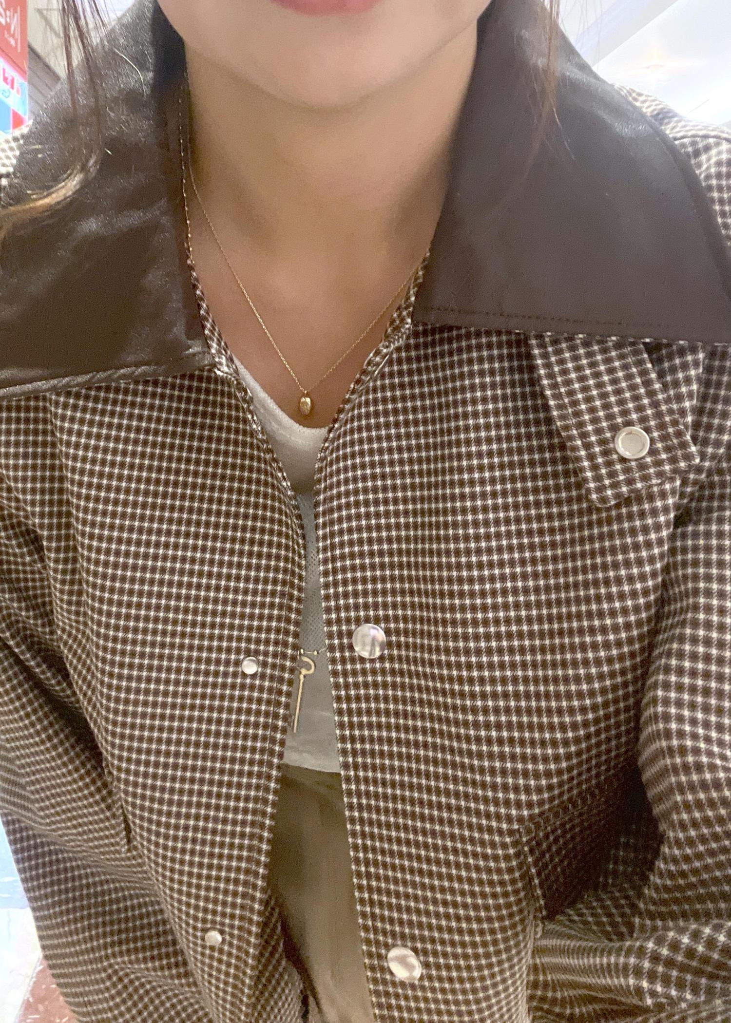 VISショートカバーオールジャケットブラウン系 / F¥6,999レビュー秋らしいチェック柄のブルゾンです。エリがフェイクレザーで派手柄ではないので、大人っぽくも着られます。156センチで着丈はウエストまでの短すぎない丈なので、バランスがとりやすく、スタイルアップも叶います。バックスタイルもデザインアリでこだわりの詰まったアウターです。軽いので、今の季節からの羽織りとしても、オススメの一着です。