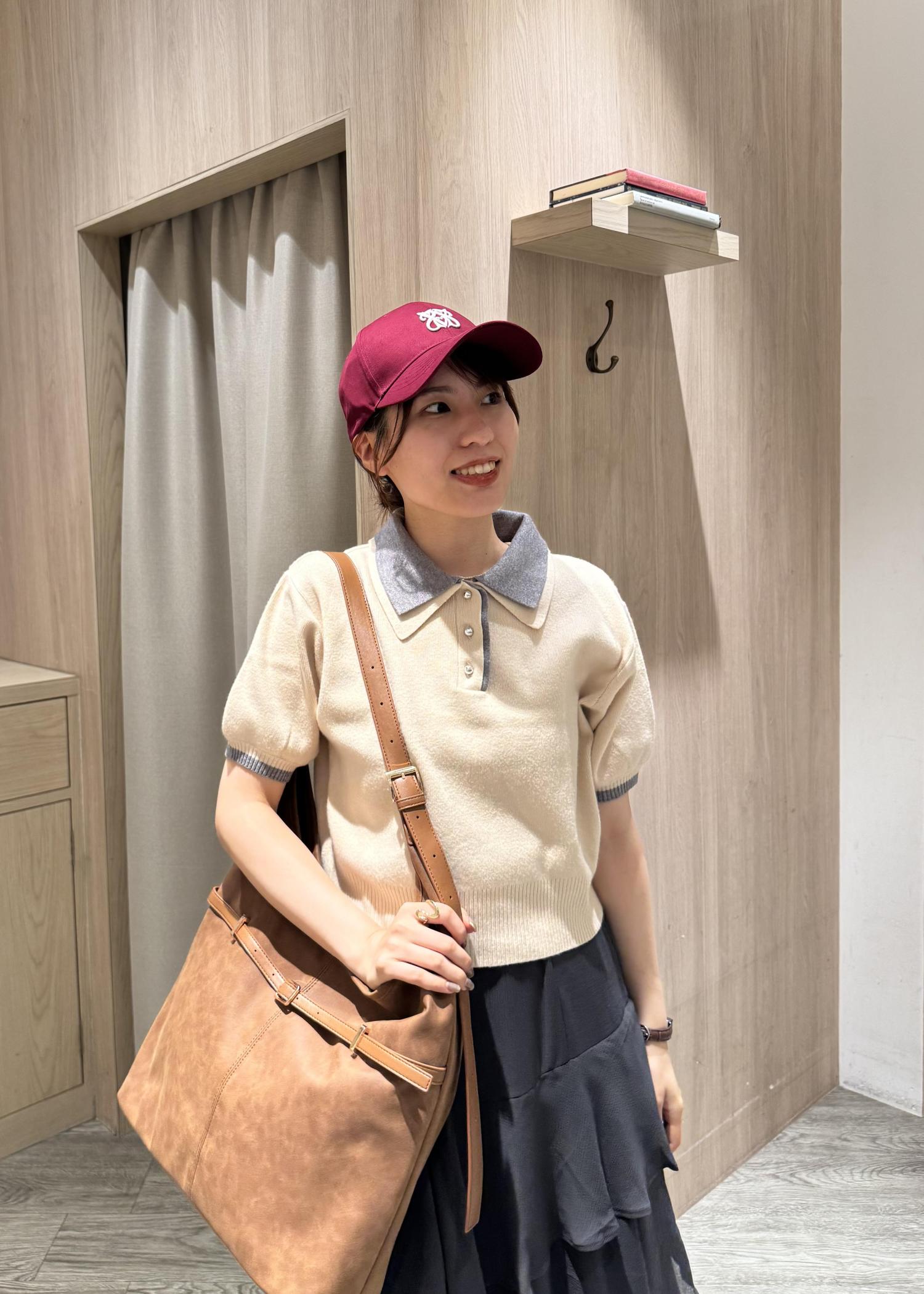 ヒップにかからない丈感でした!インでもアウトでも着用できる丈感なので、色んなボトムスと着回しが可能です◎素材は少し厚めなので、まだまだ暑い今年の秋でも沢山着用いただけると思います! -