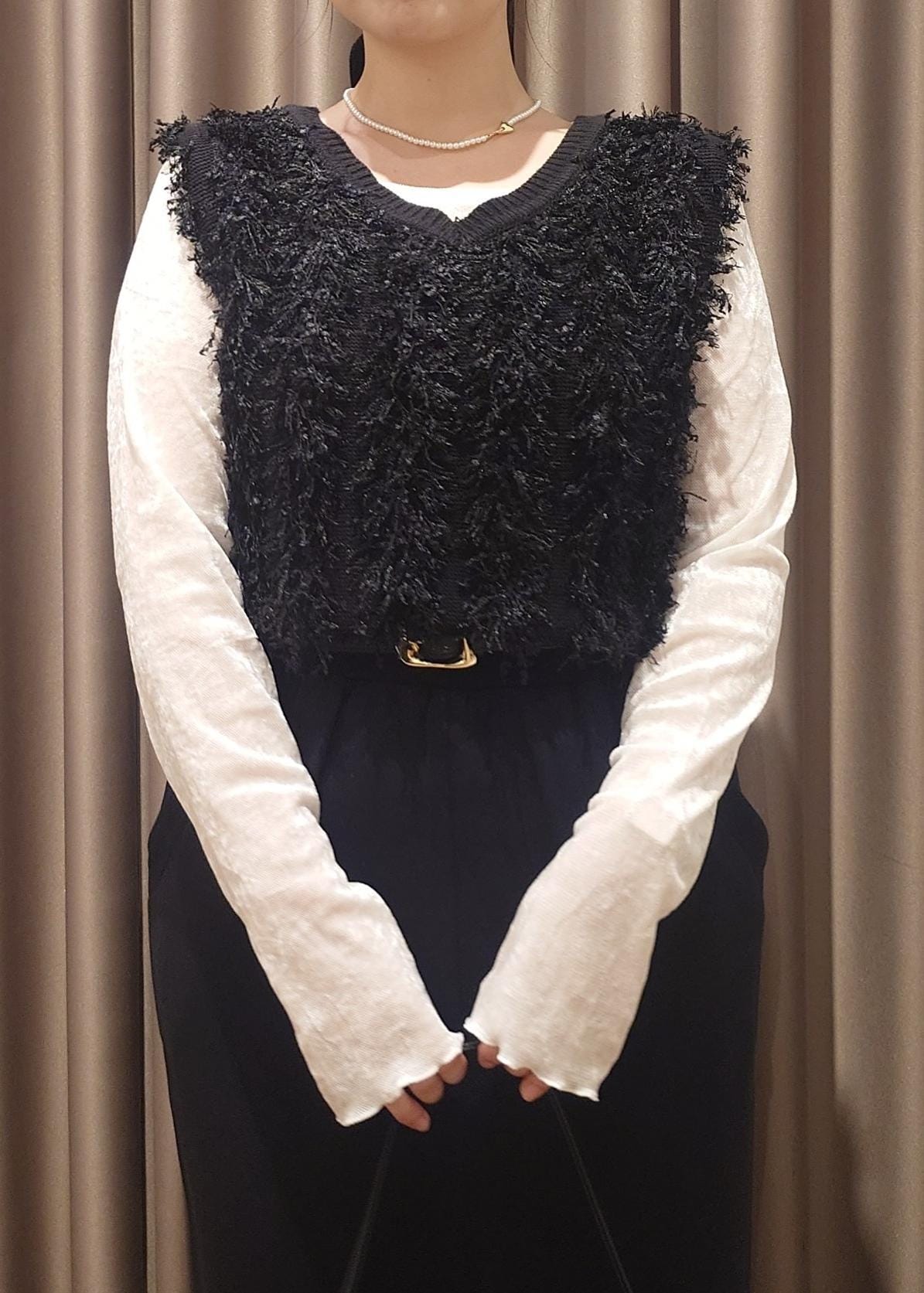 VIS【2WAY】フリンジニットベストブラック系 / F¥5,929レビュー柔らかなフリンジが秋らしくて可愛いニットベストです。