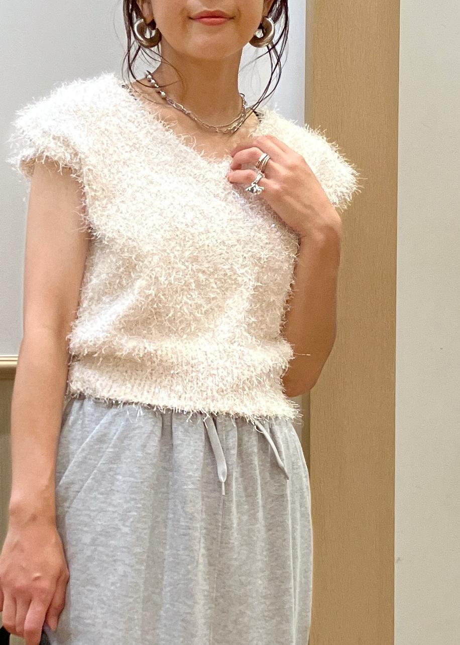 VIS【WEB限定サイズ:MT/着丈が選べる】【洗える】フェザーヤーンニットベストホワイト系 / M¥3,293レビューキラキラ感がカワイイフェザーニットは、簡単にオシャレ見えするオススメアイテムです。