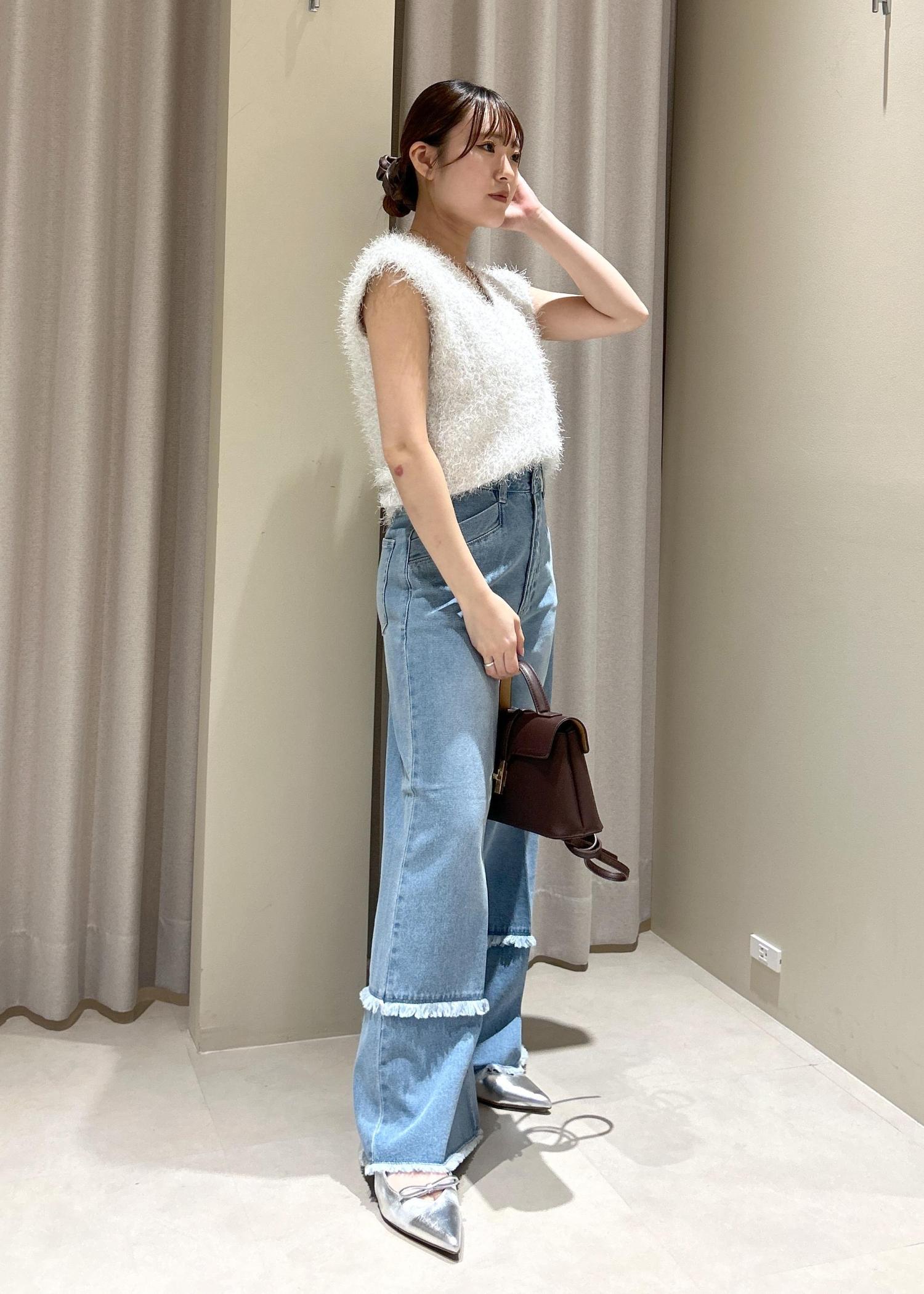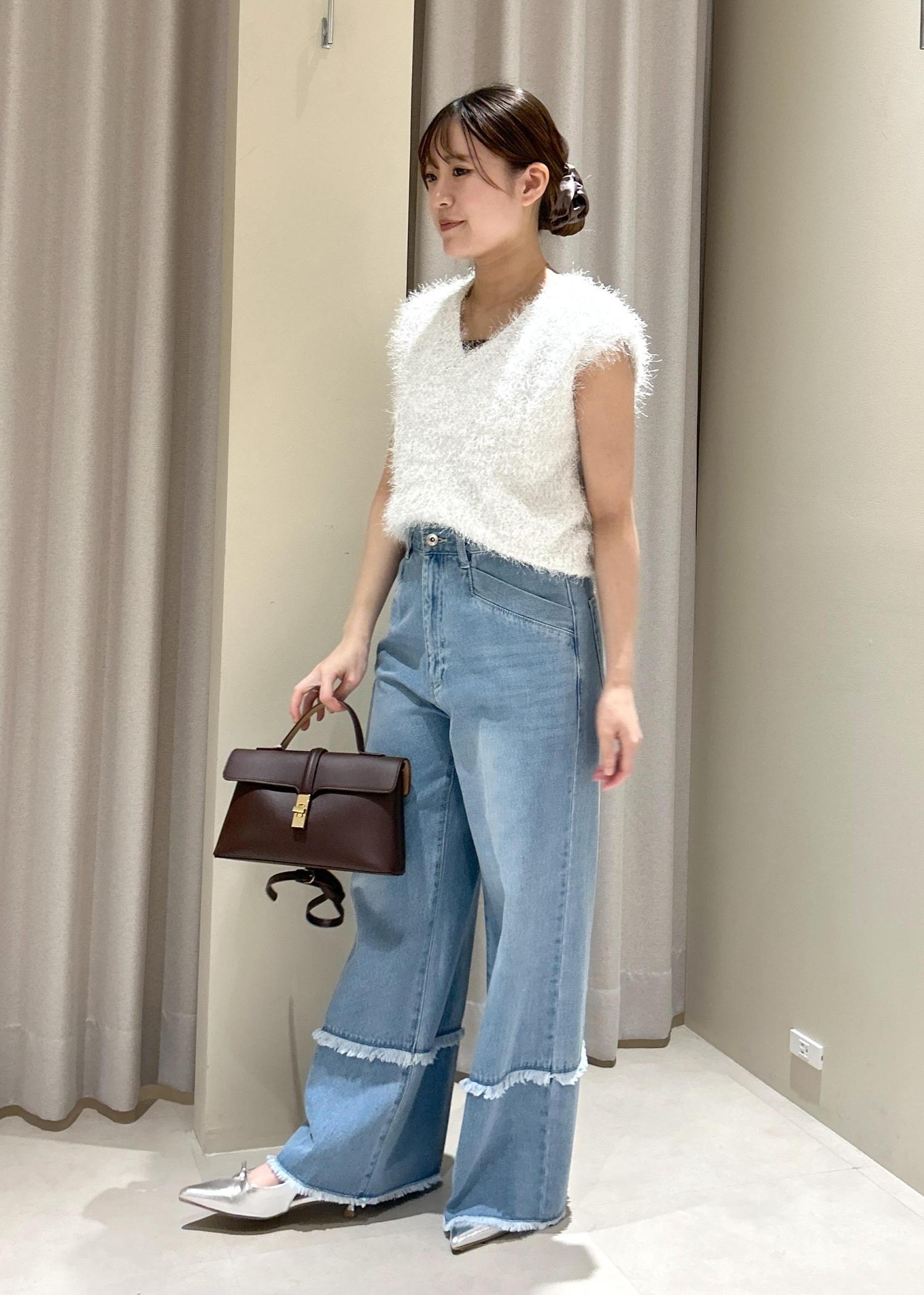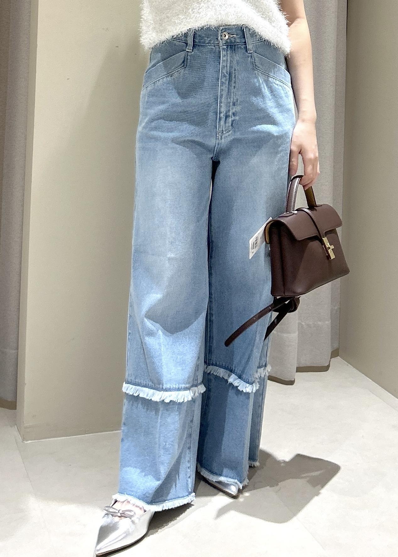 VISフリンジフレアデニムサックス / S¥4,395レビュー裾広がりのワイドパンツで腰周りもキュッと安定する感じで、履きやすいです。