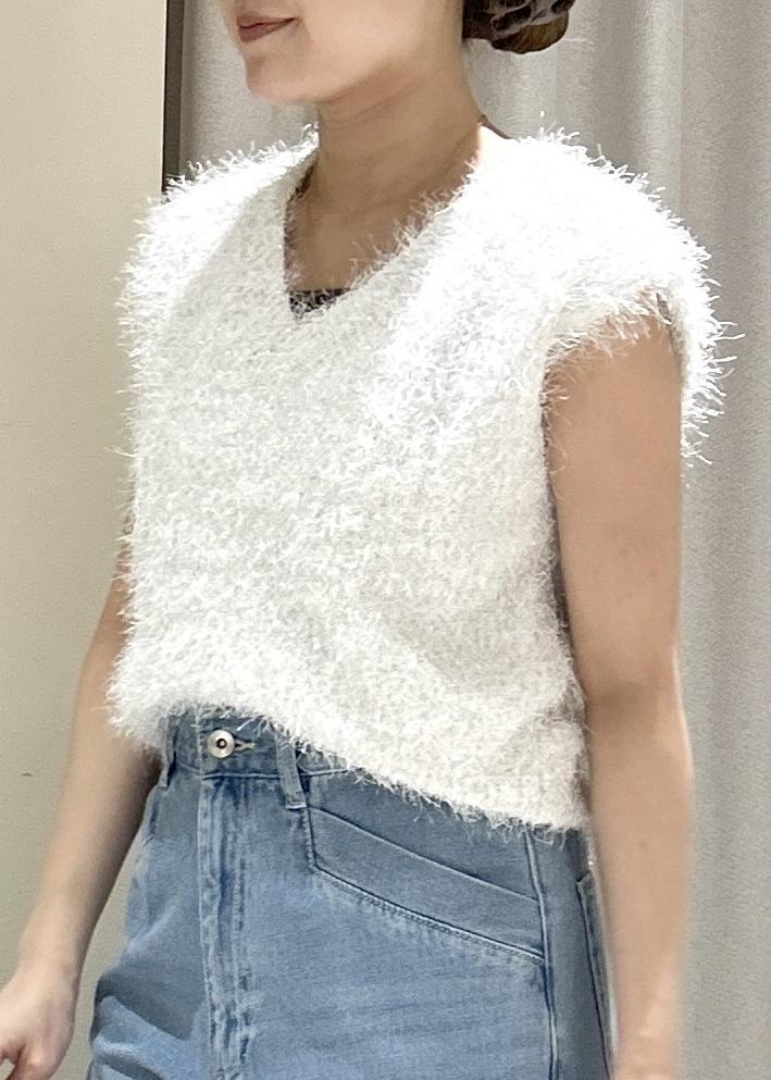 VIS【WEB限定サイズ:MT/着丈が選べる】【洗える】フェザーヤーンニットベストホワイト系 / M¥3,293レビューキラキラしたニットで着映えします。
