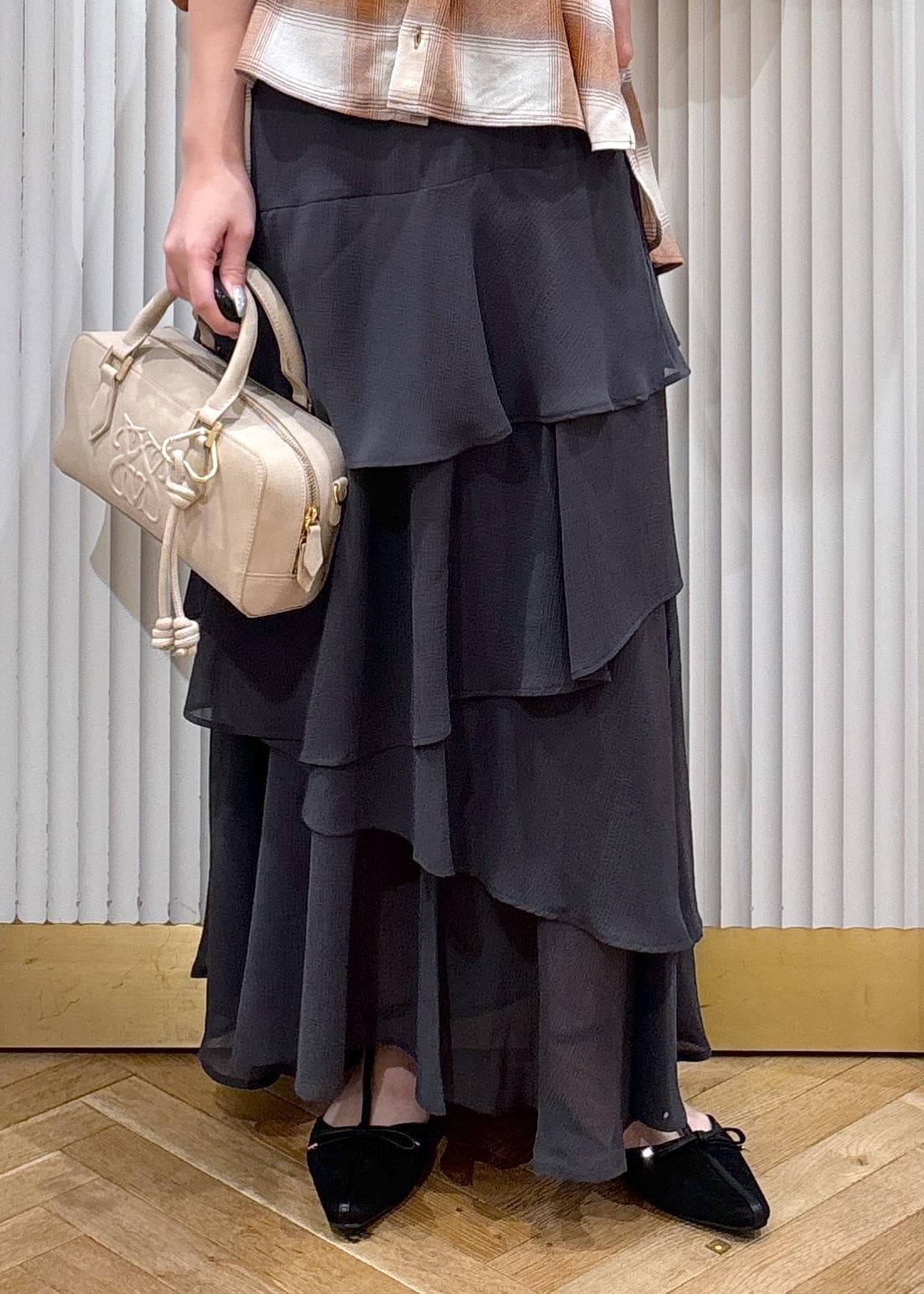 VIS花柄アソート楊柳ティアードスカートチャコール / F¥4,613レビュー一枚履くだけでコーディネートが華やかになります!