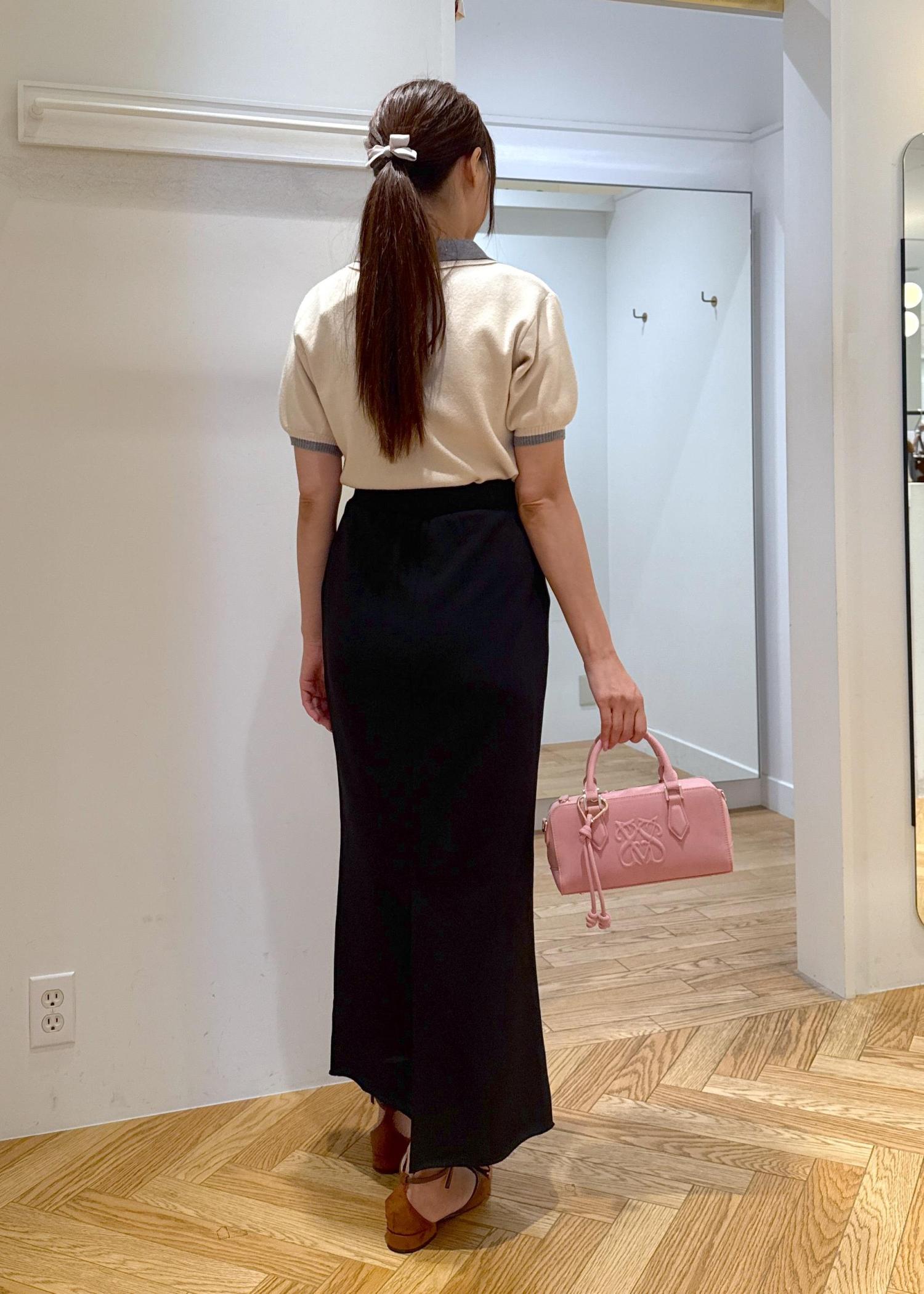 トレンドのダブル襟ニットにタイトスカートを合わせた秋のカジュアルコーデです。