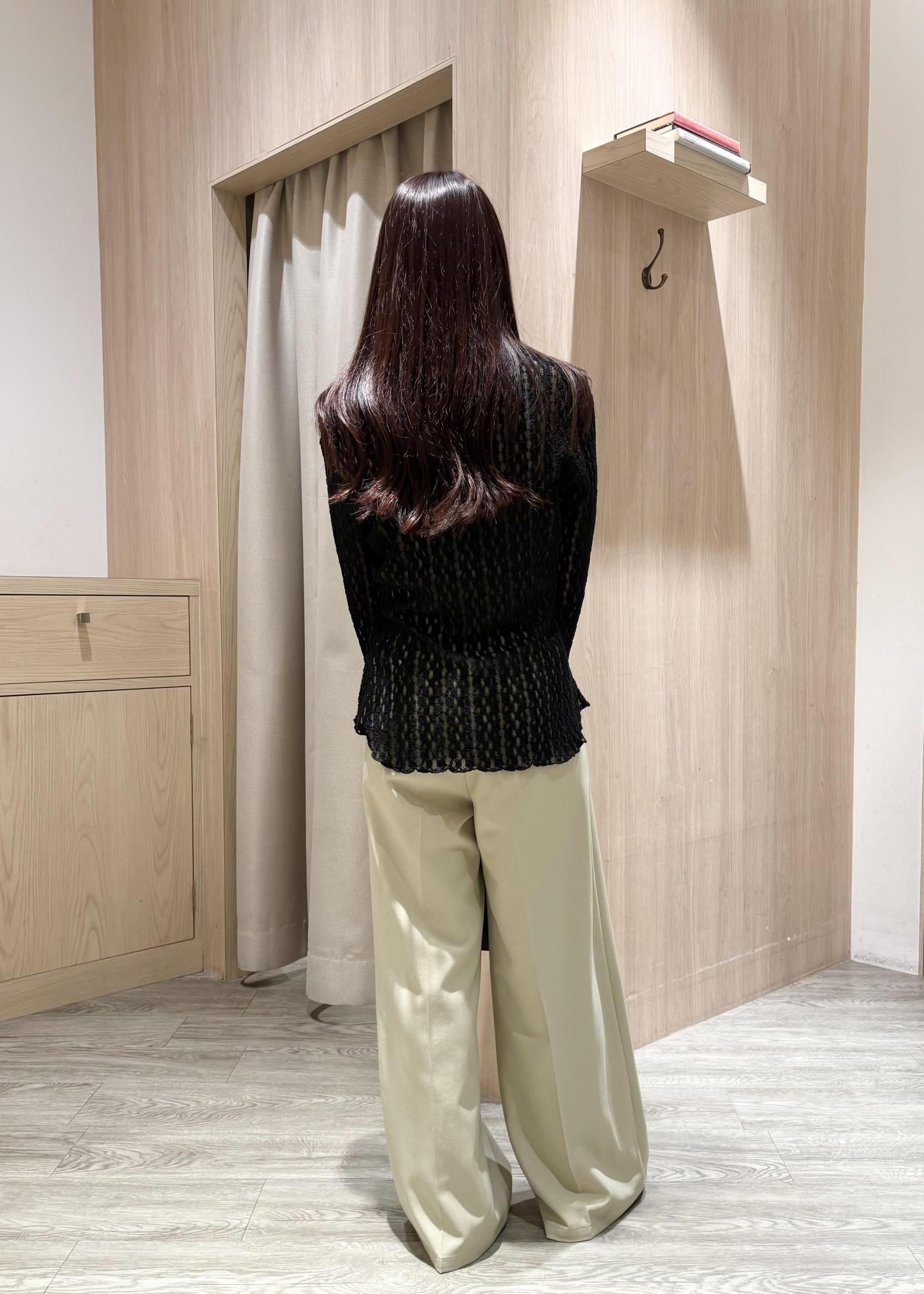 ワイドパンツと合わせることでバランスよく見えますよ。 -