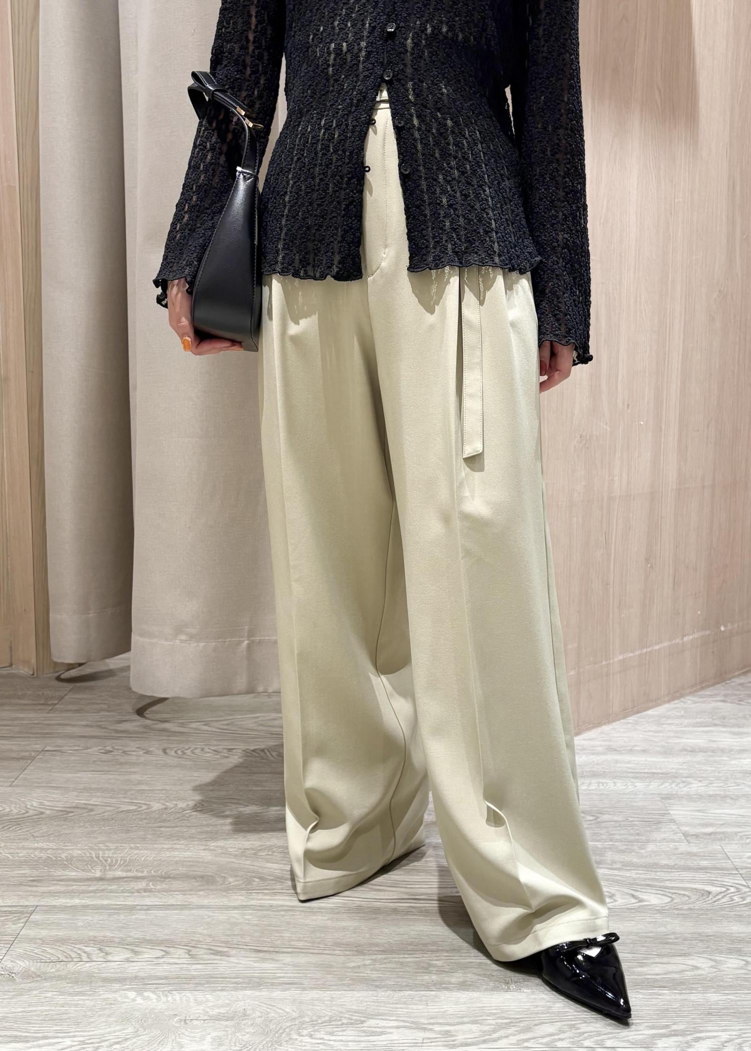 ワイドなお作りのためゆったりと着用できますが、ベルトも付いているので腰回りは調節可能です。 -