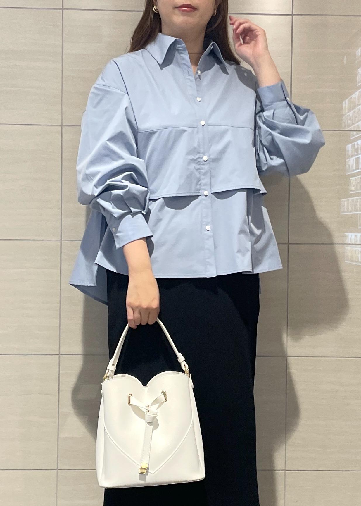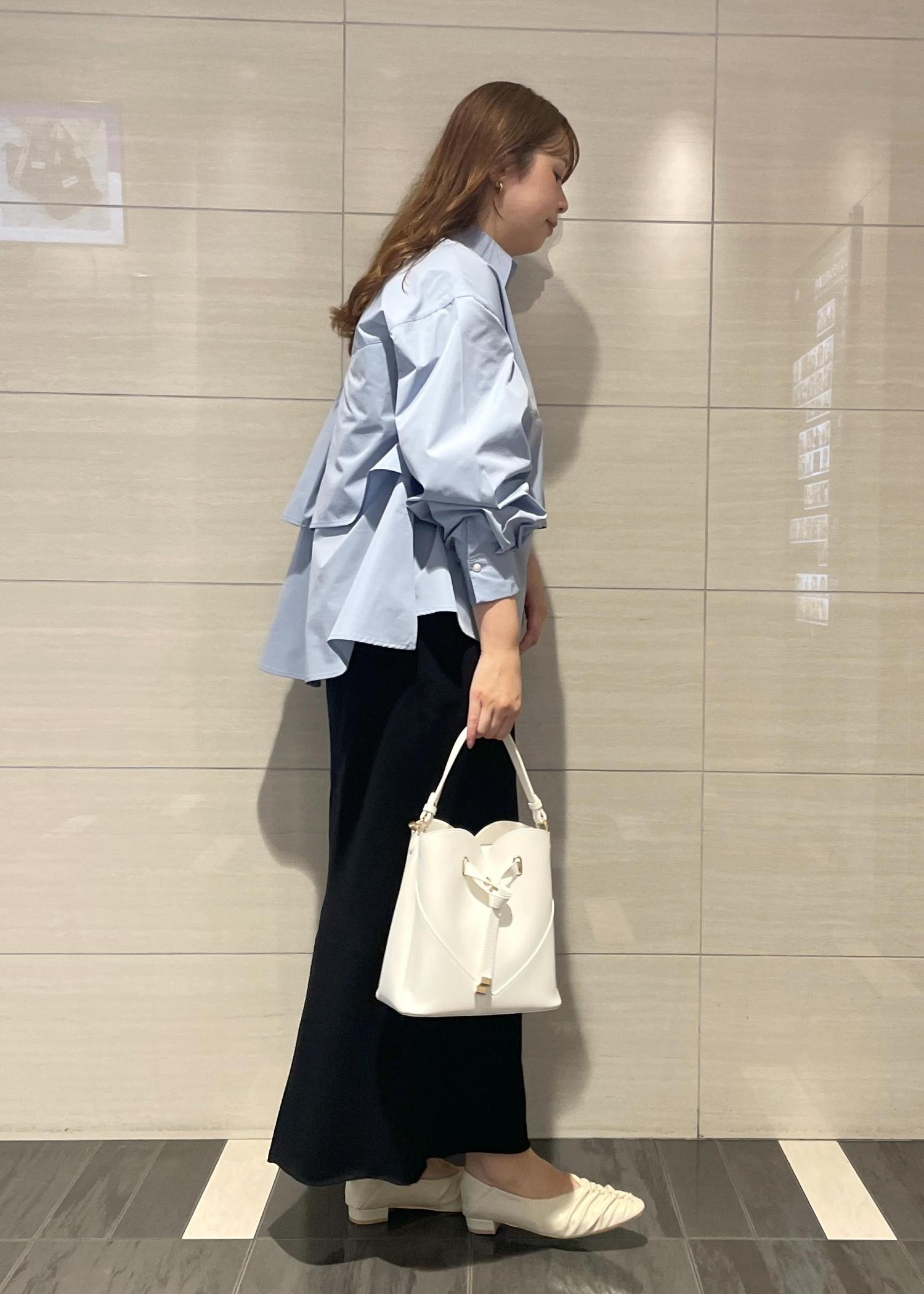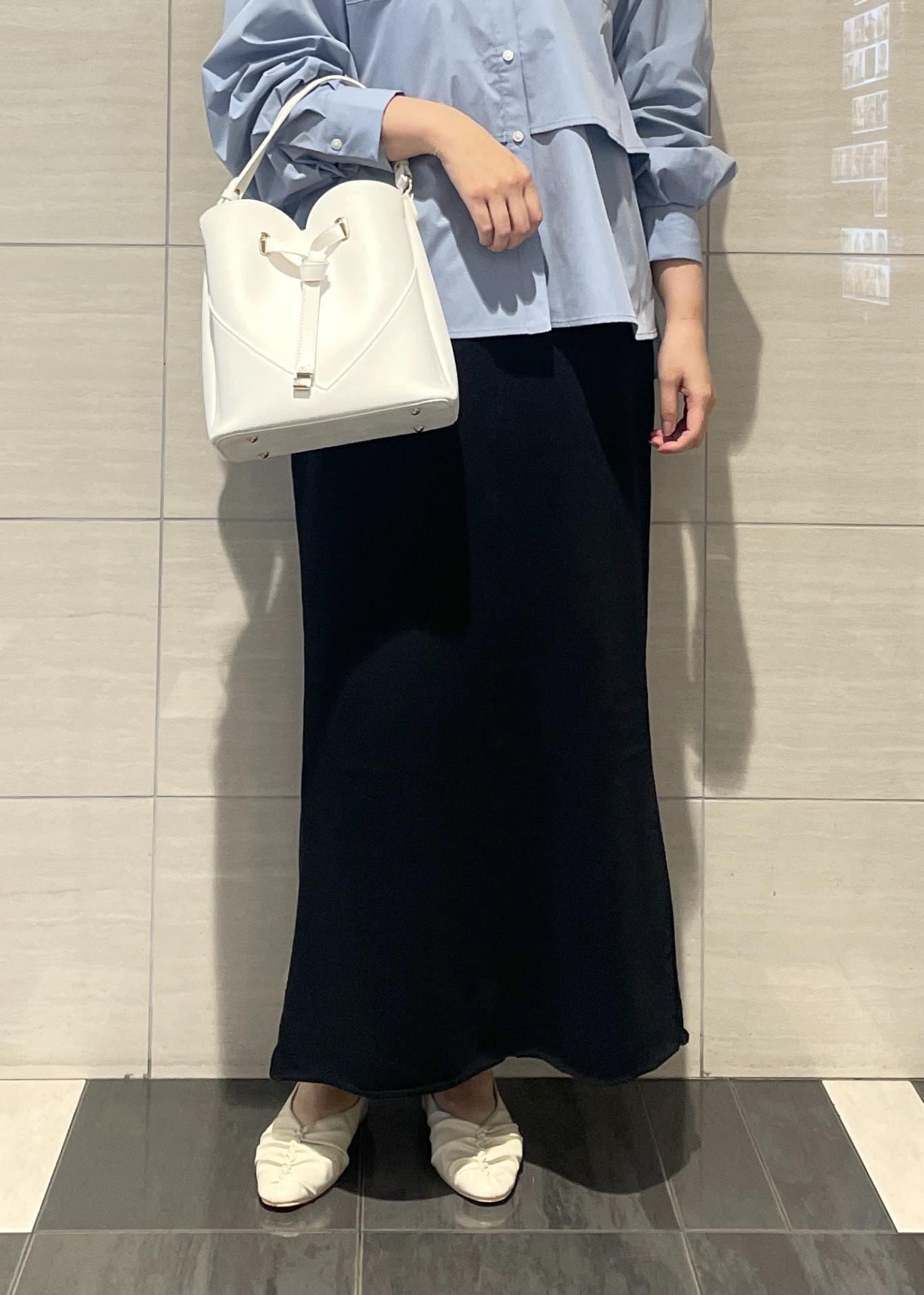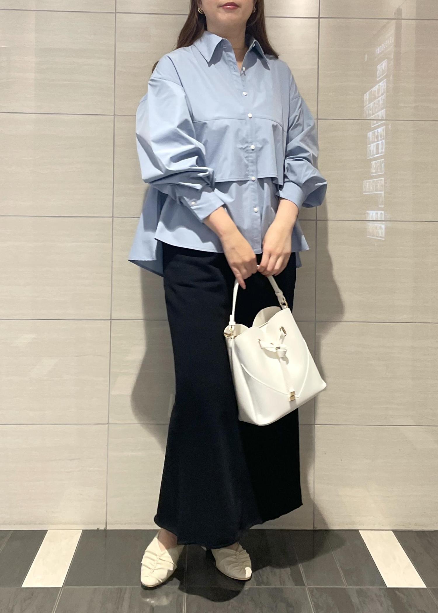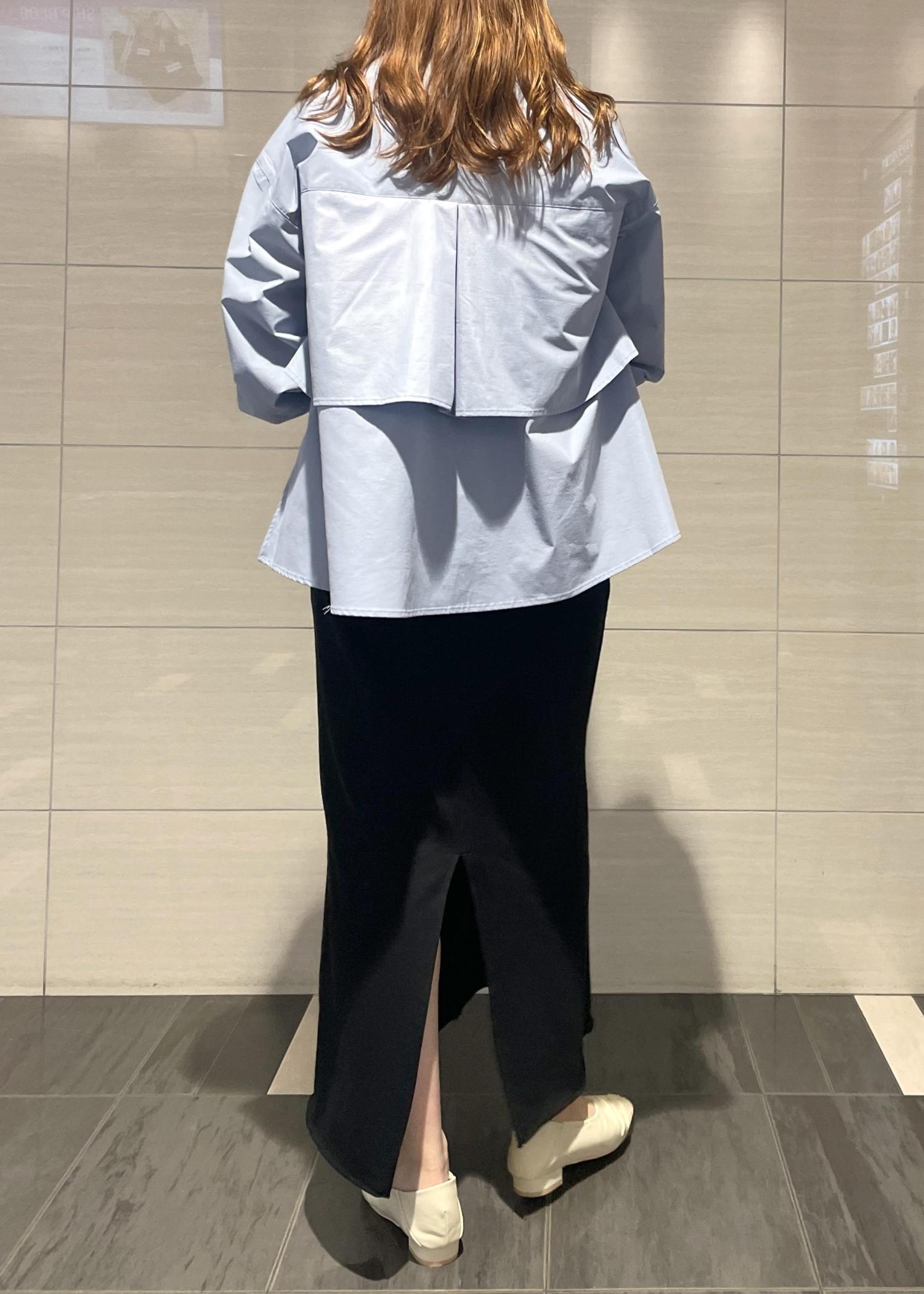 オーバーサイズなのでタイトスカートや細身のボトムがおすすめです。 -