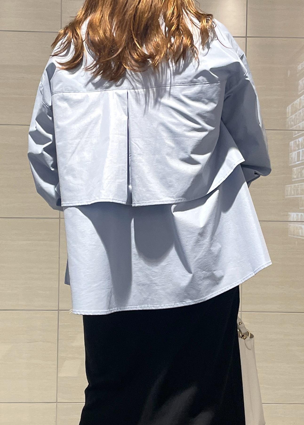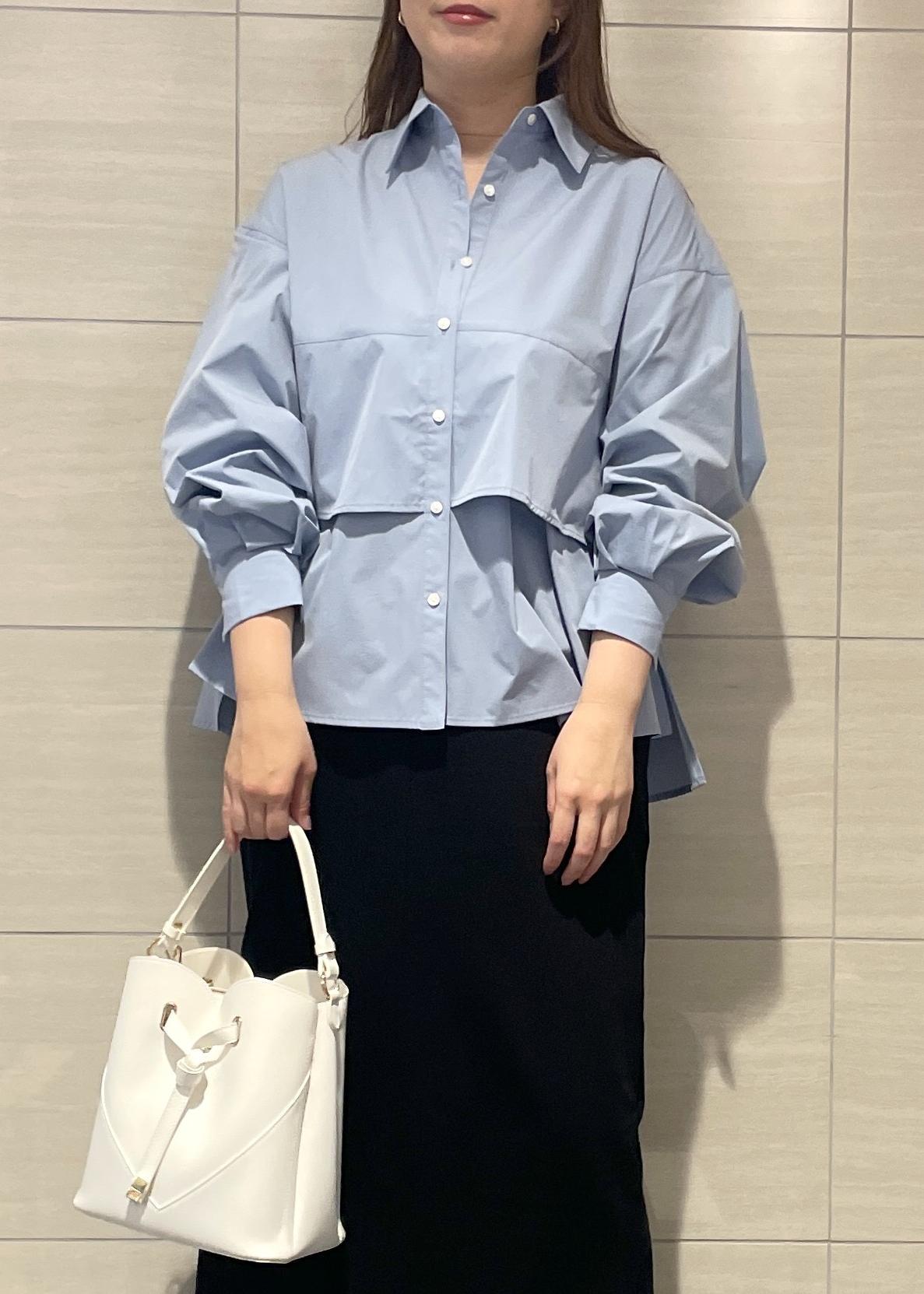 VIS裾ティアードオーバーシャツ/UVケア・イージーケアサックス / F¥3,557レビュー163cmでヒップがほとんど隠れる丈感です。