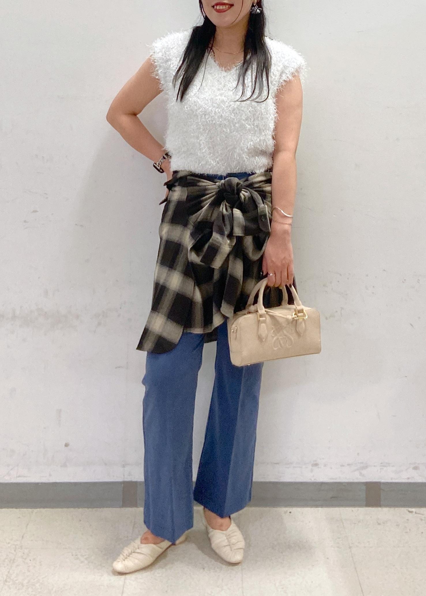 オーバーなサイズ感で後ろを少し抜いて着るとこなれ感が出やすいです◎