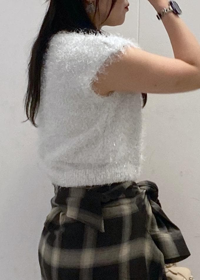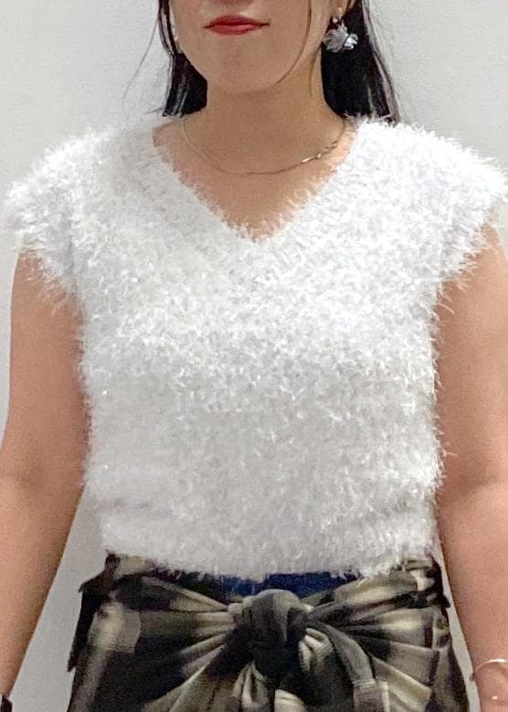 VIS【WEB限定サイズ:MT/着丈が選べる】【洗える】フェザーヤーンニットベストホワイト系 / M¥3,293レビューキラッと華やかなニットです。
