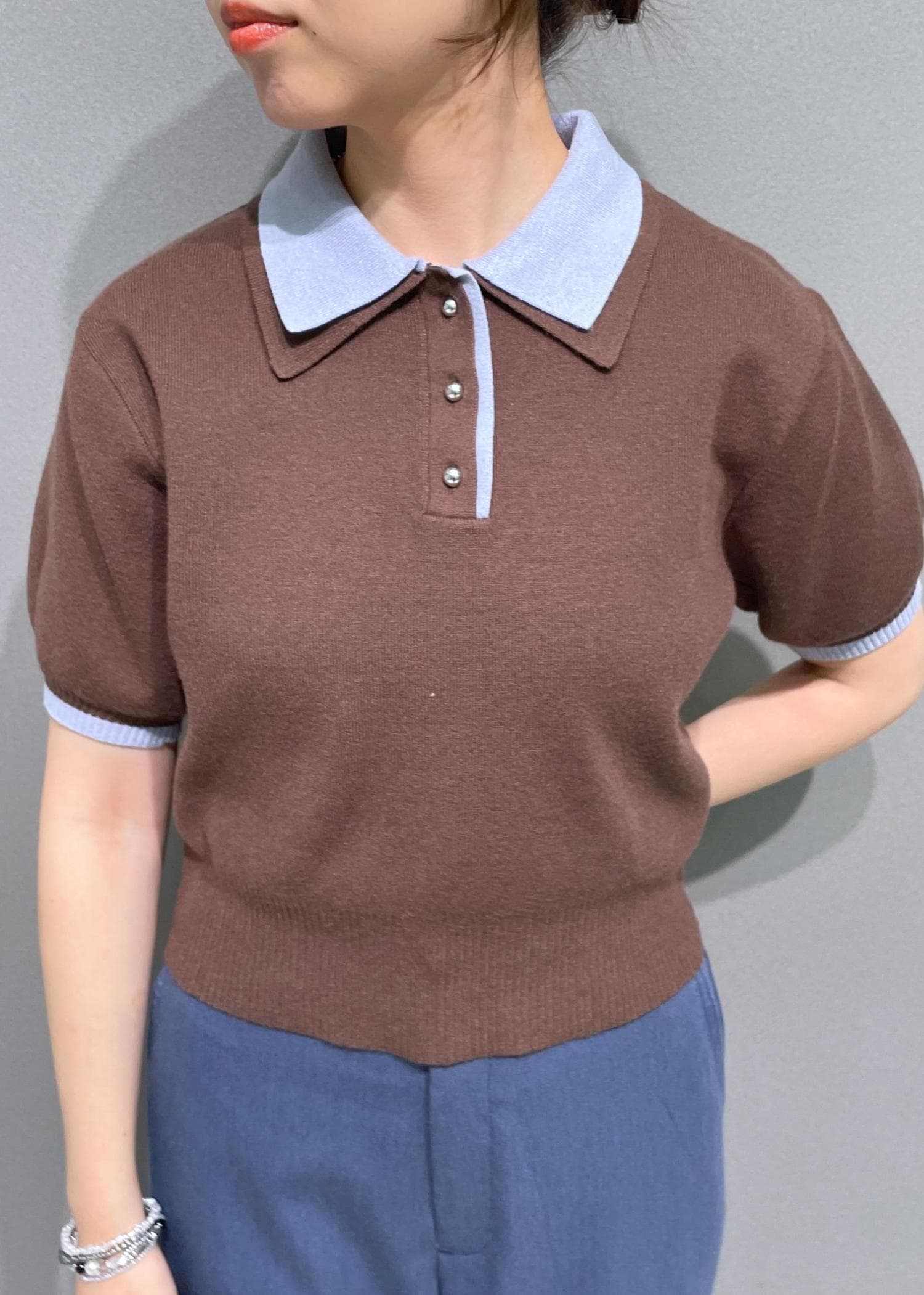 VISダブルカラーポロトップスブラウン / F¥5,929レビューダブルカラーの配色が可愛いポロトップスです♡