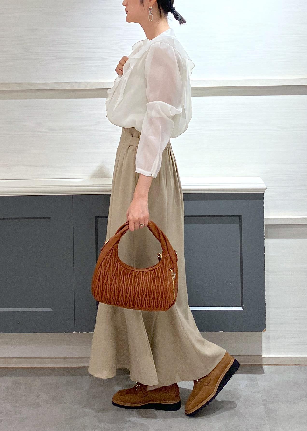 足元はヒールで女っぽくも良いですが、敢えてのローファーでカジュアルダウンしても違和感なくスタイリング出来ました♩