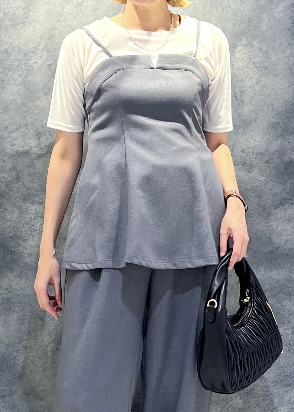 VIS【美easy】ウーリッシュチュニック丈ビスチェ【セットアップ対応/洗える】グレー / F¥6,589レビューセットアップ対応のビスチェはやっぱり同色のパンツと合わせるのがベストスタイル!