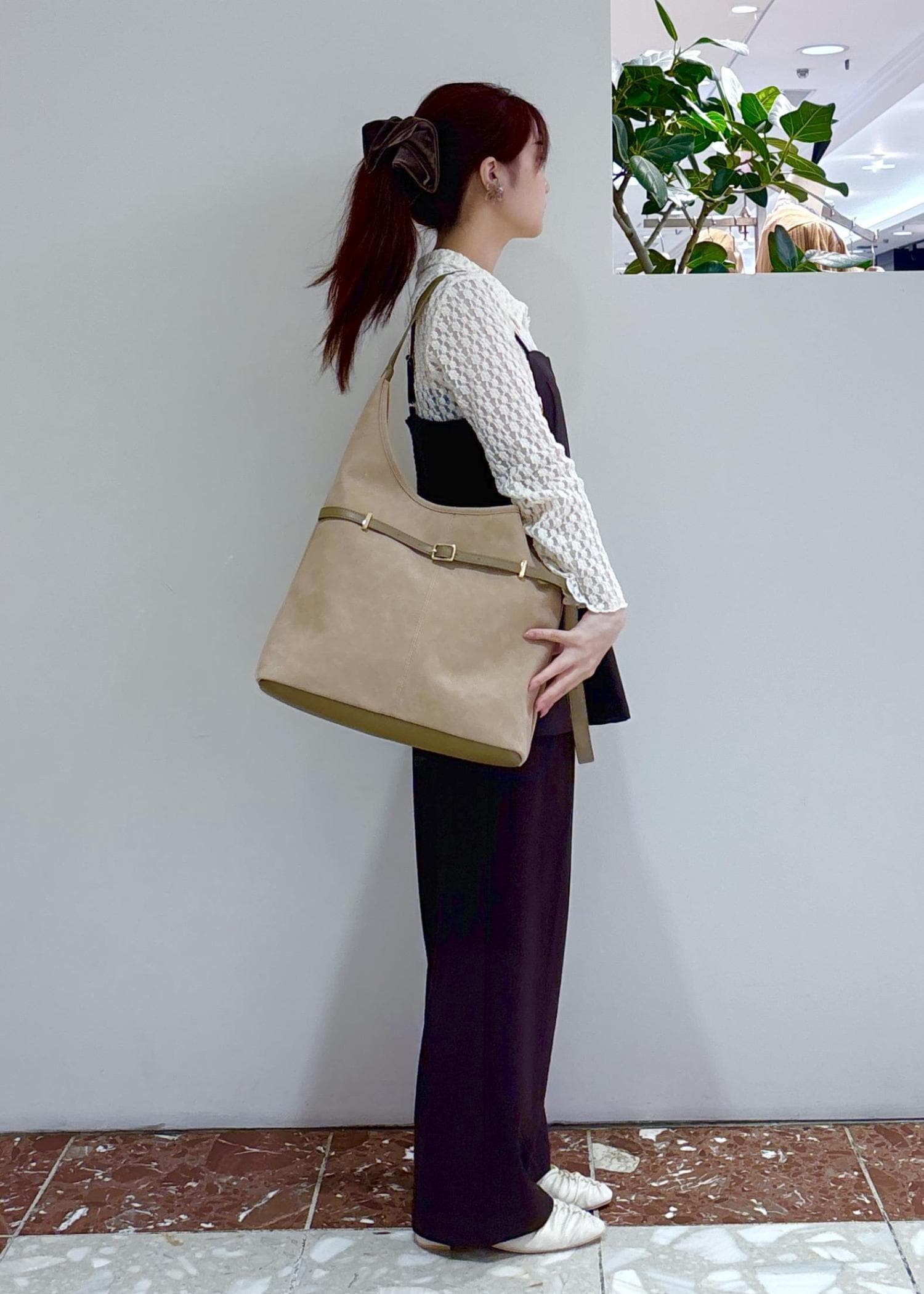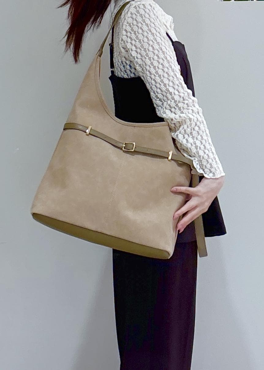 VIS【A4収納】フロントベルトソフトショルダーバッグベージュ系 / F¥5,535レビュースウェードの生地感が高みえします◎