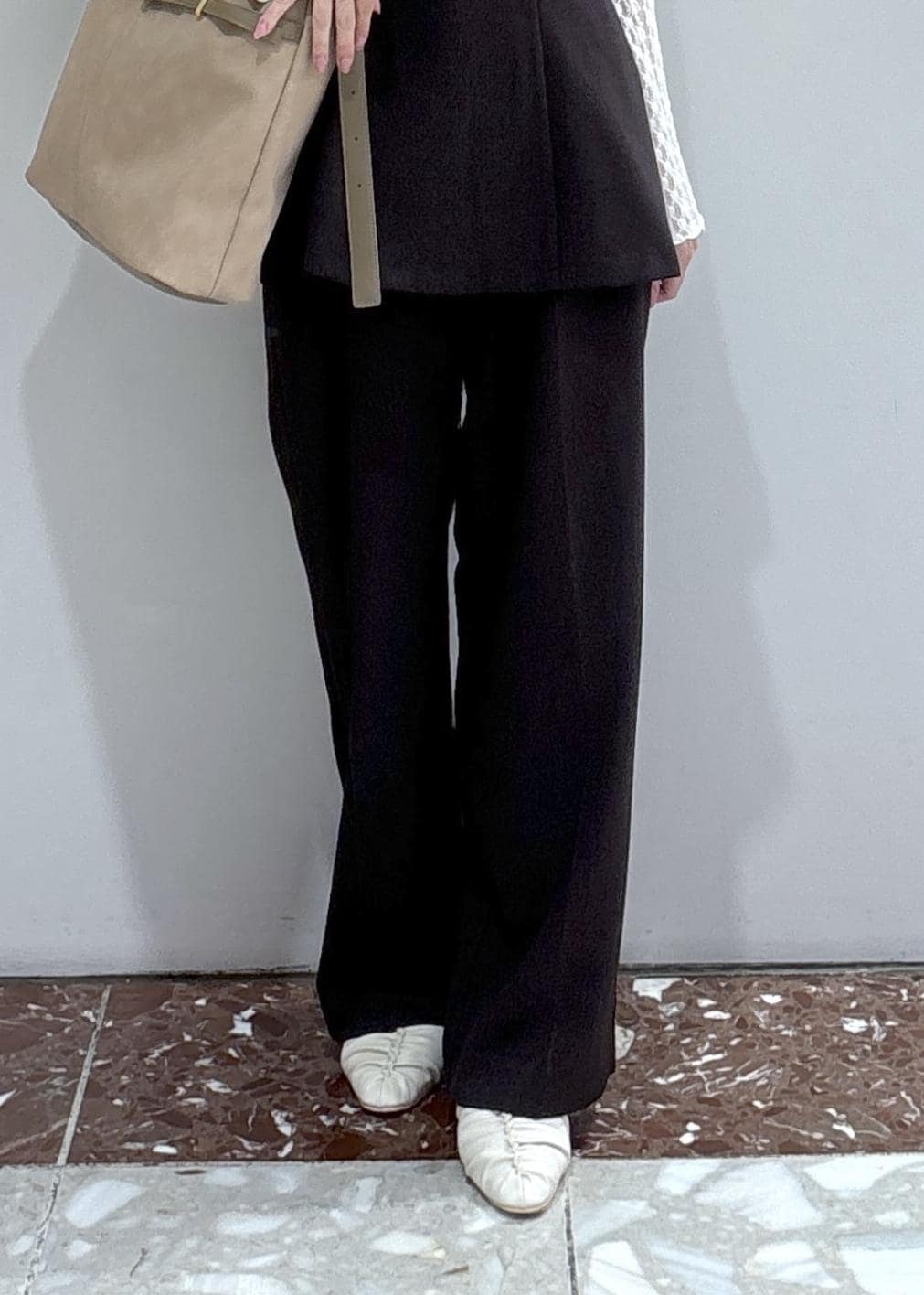 VIS【美easy】ウーリッシュワンタックワイドパンツ【セットアップ対応/洗える】ダークブラウン / S¥6,589レビュー158cmSサイズ着用。フラットシューズで床につかない位でした!