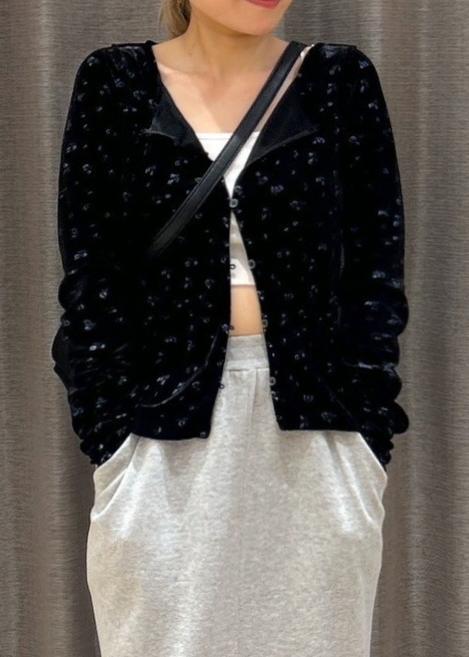 ベロア素材ですが、肌にあたる内側部分はサラっとしているので、秋物1着目にオススメですよ。 -