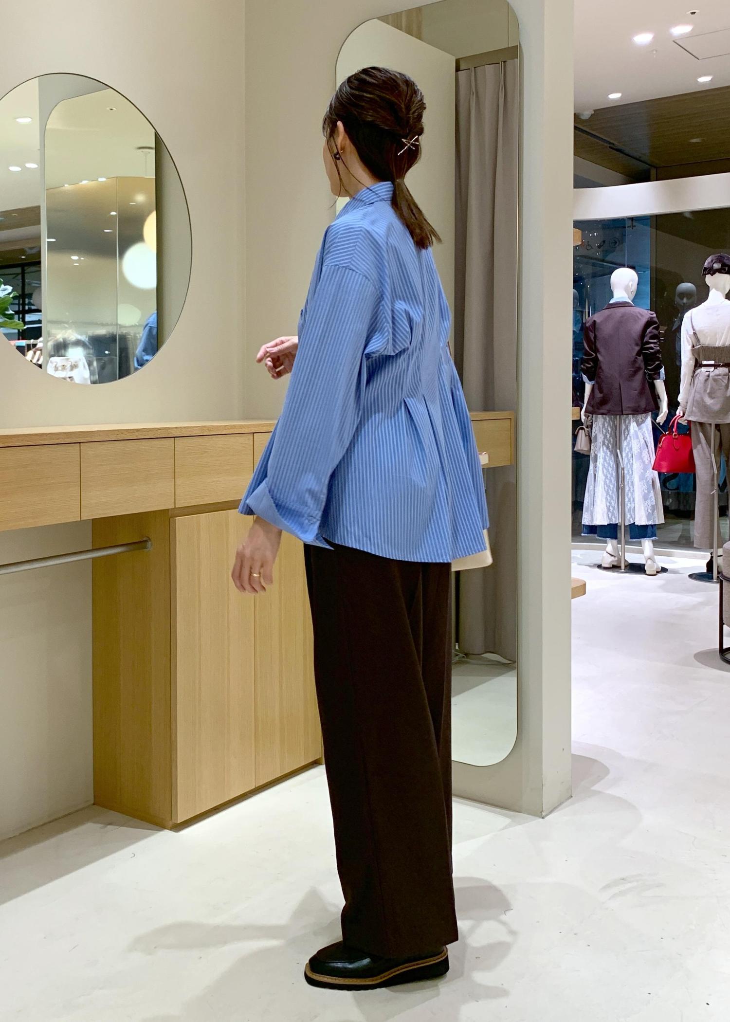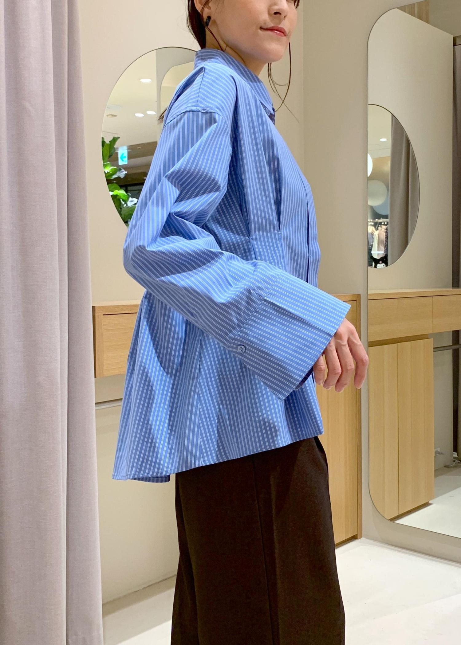 VIS【POLOBCS】VIS別注ウエストタックフレアシャツブルー系 / F¥6,930レビュー生地はパリパリしてなく柔らかいので、シャツでも堅苦しくなく着用できます。ボタンを閉じてもウエストタックのデザインも窮屈感はありませんでした。
