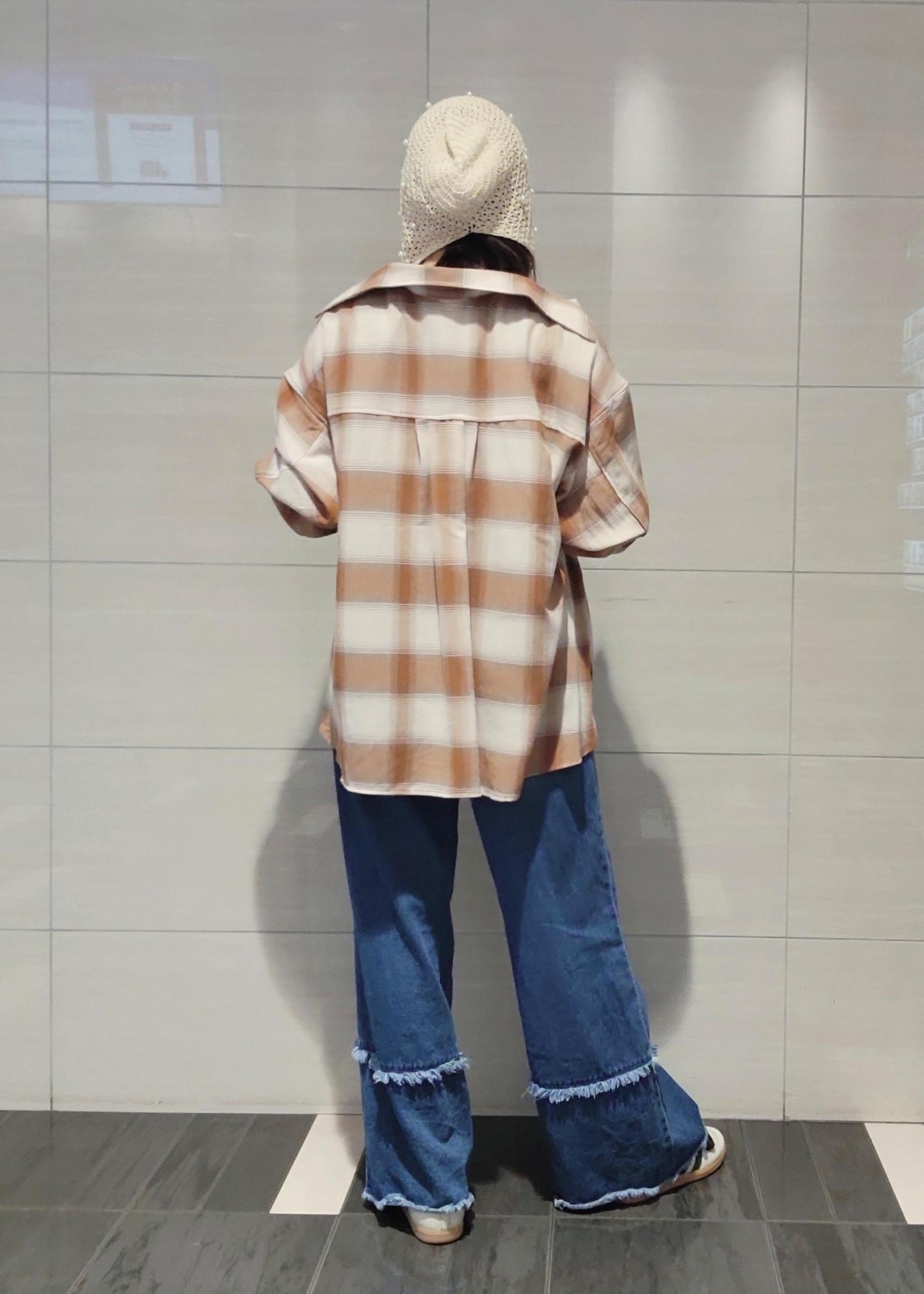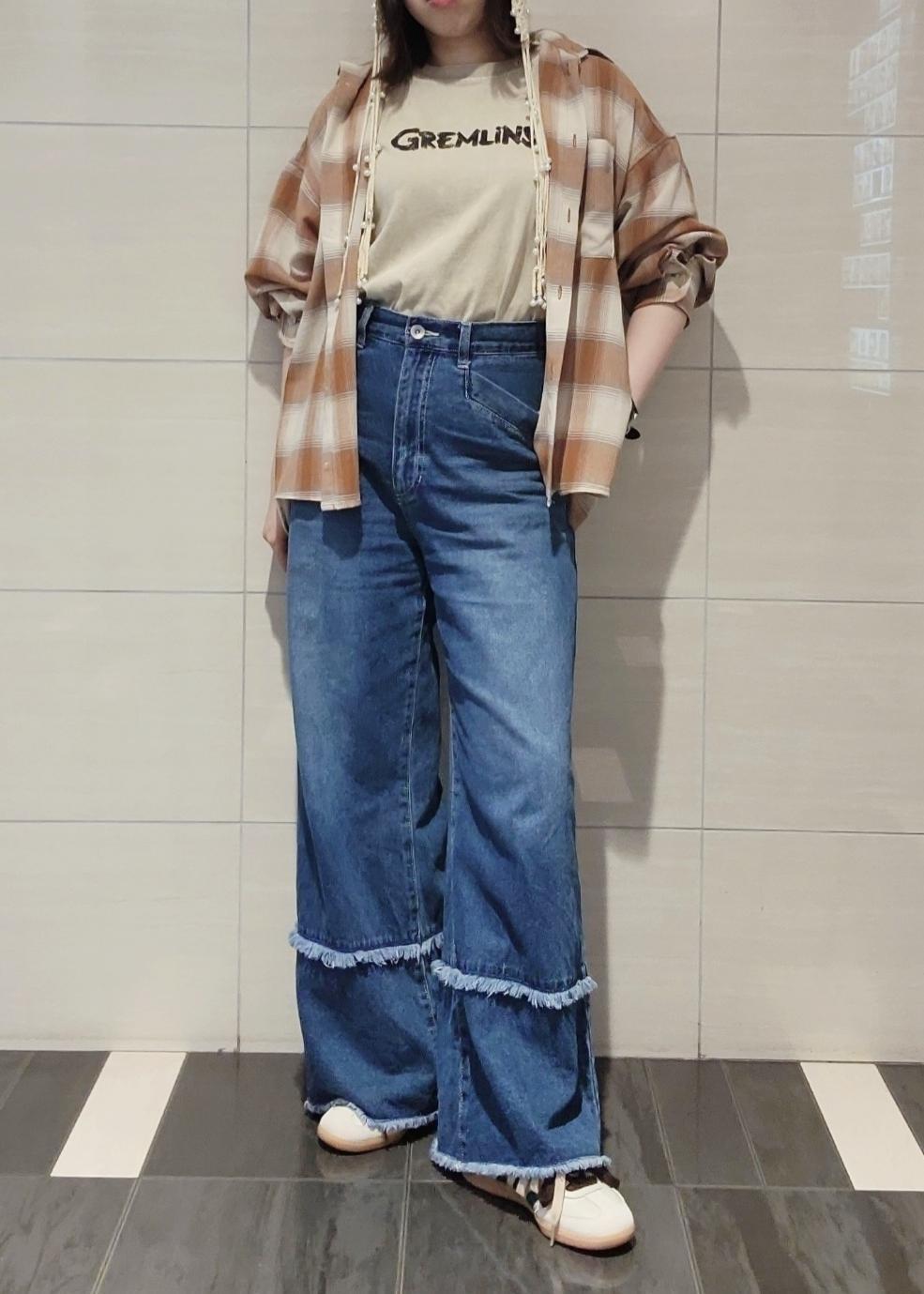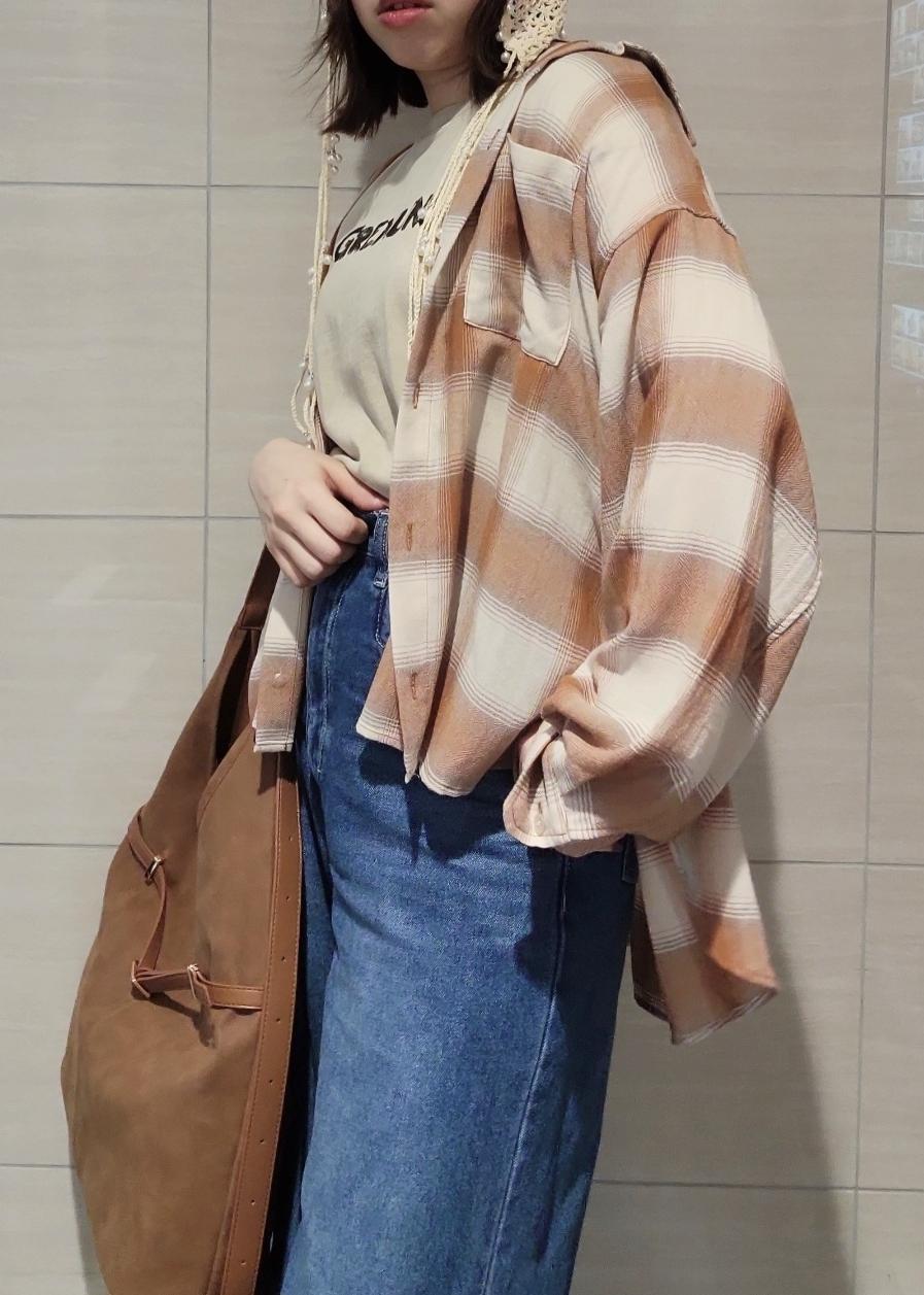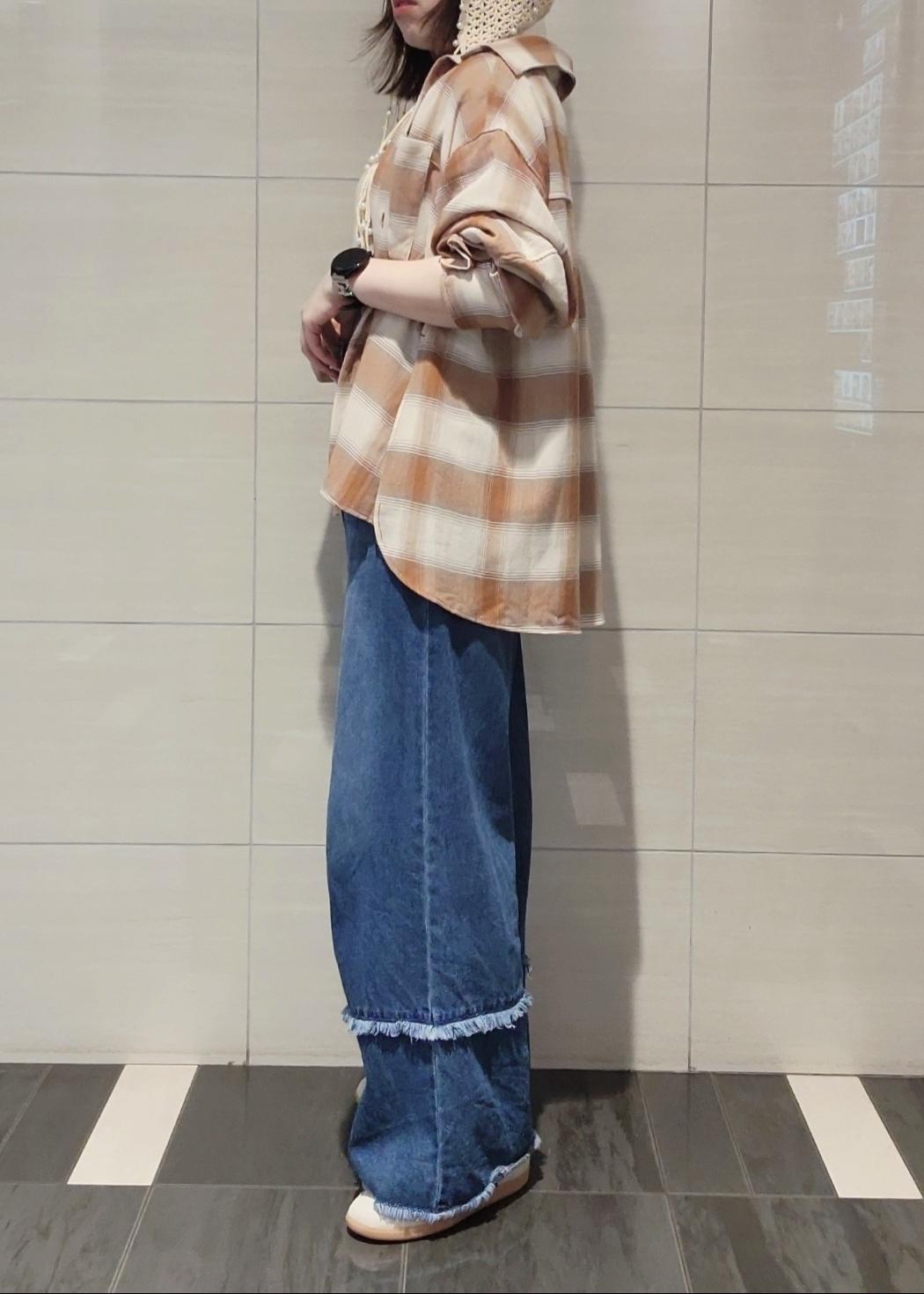 トレンドのチェックシャツでカジュアルなデニムコーデにしました!