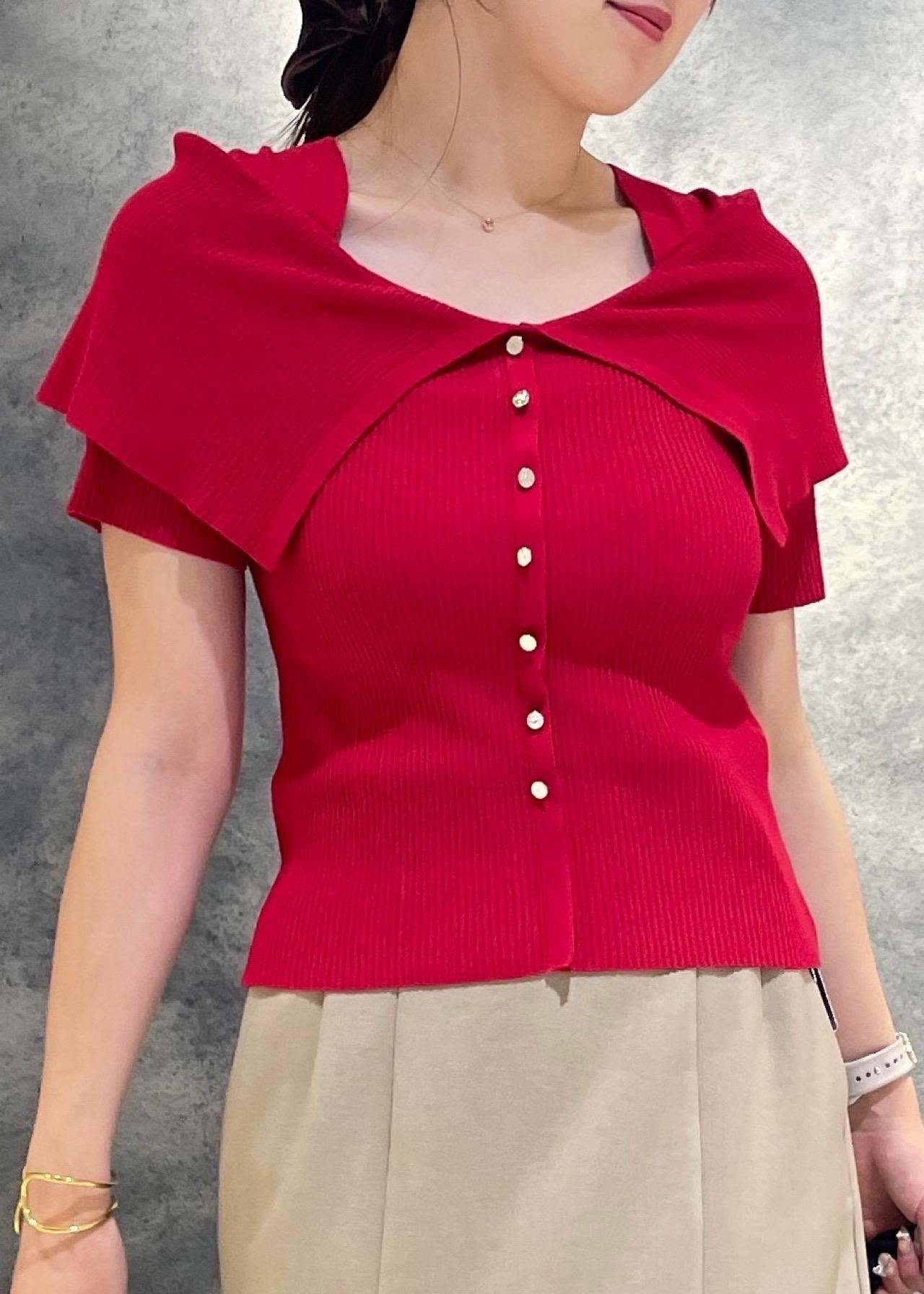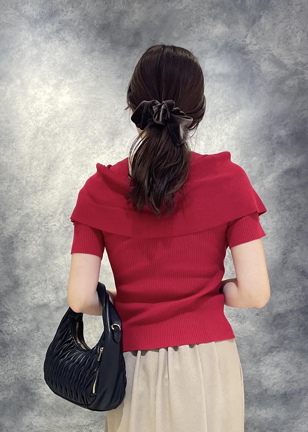 VISビックカラーオフショルハーフスリーブニットレッド / F¥2,963レビューとても伸縮性があり窮屈感なく着れます!