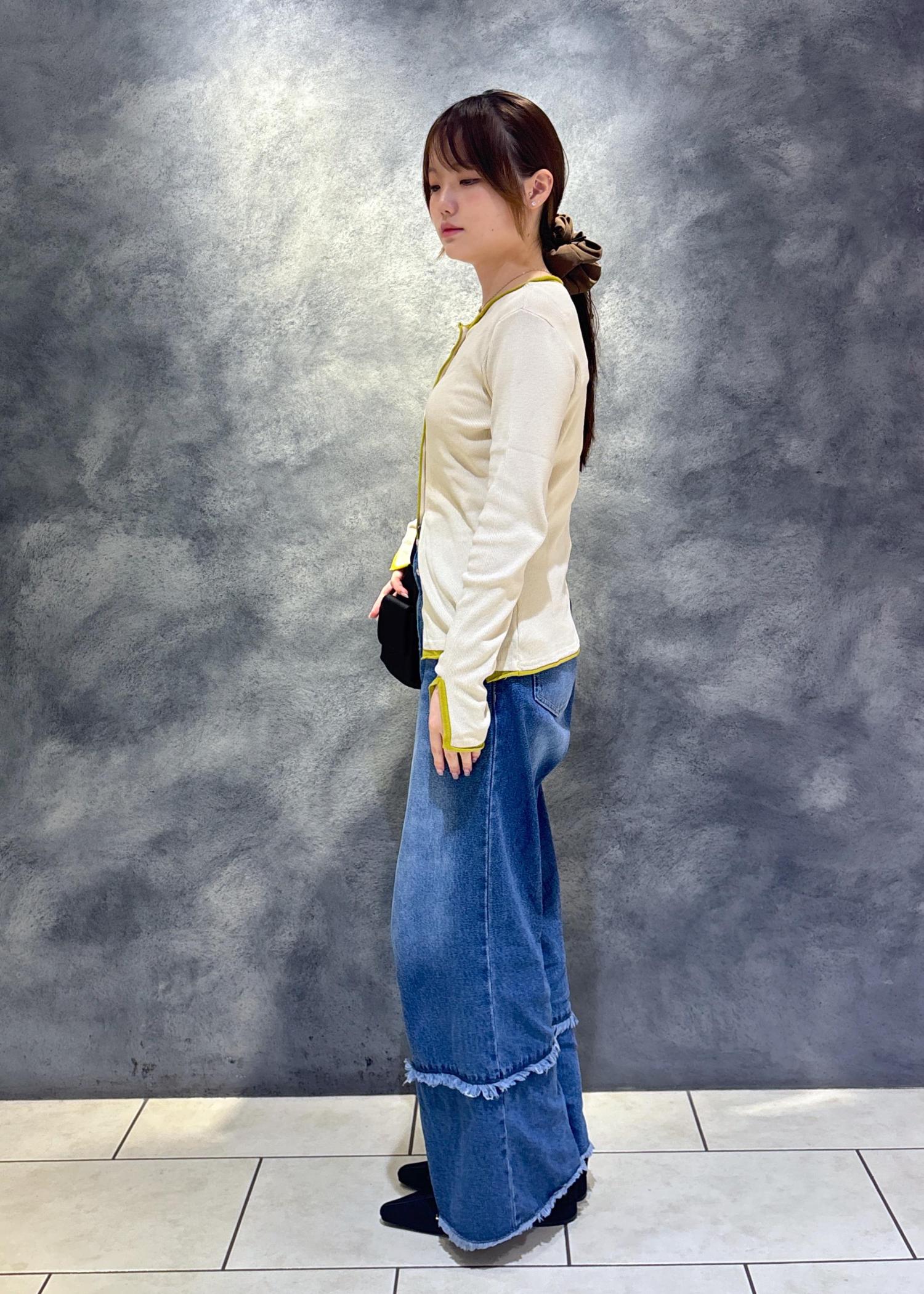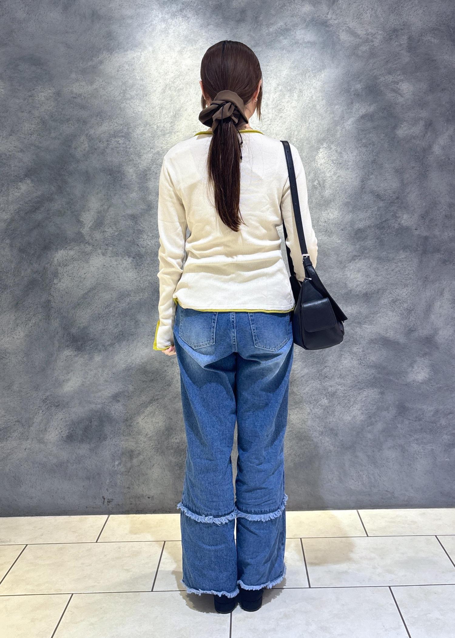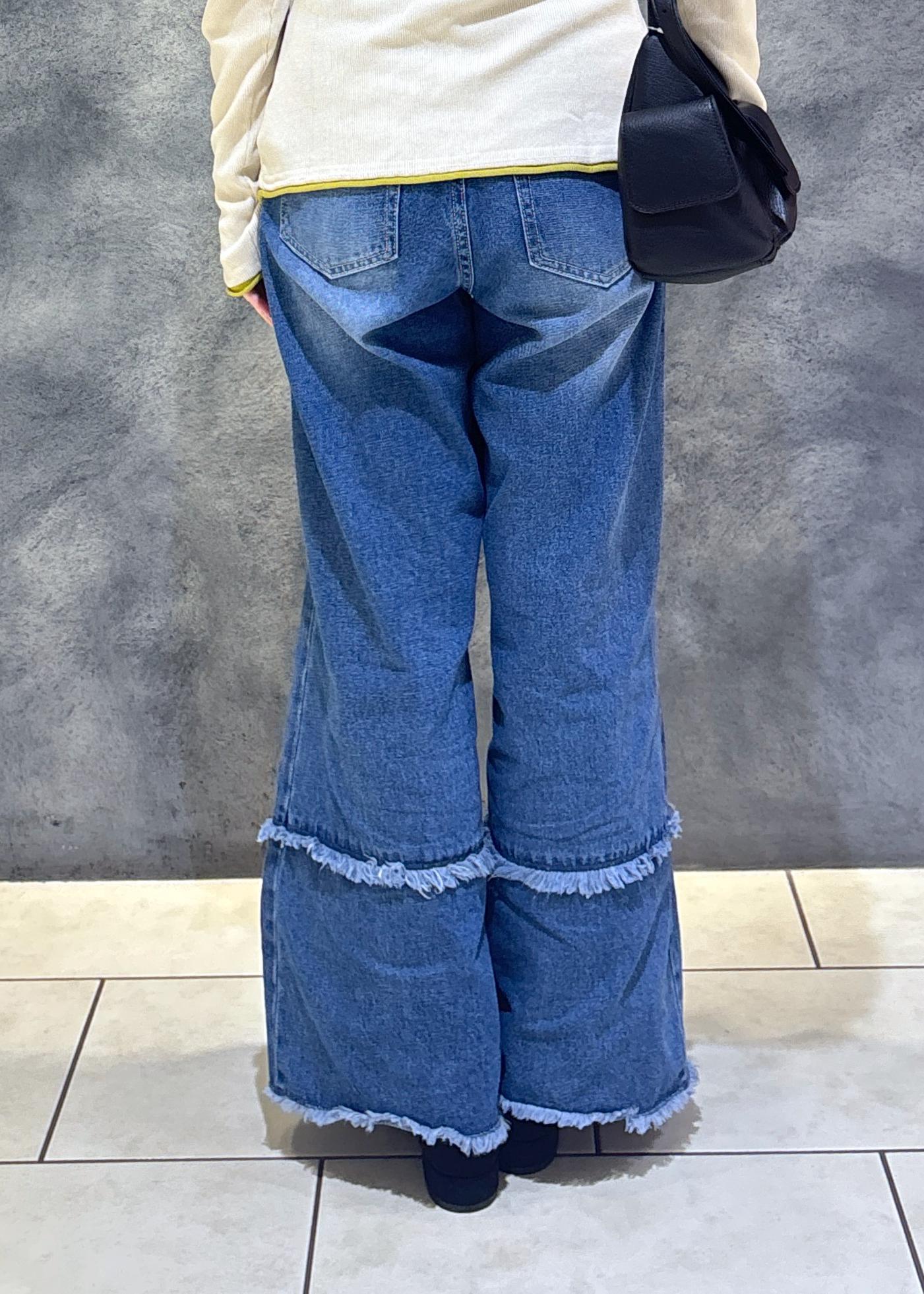 VISフリンジフレアデニムブルー系 / S¥4,395レビュー身長155cmでもSサイズでフラットなシューズを履いてかかとにかかる長さです!