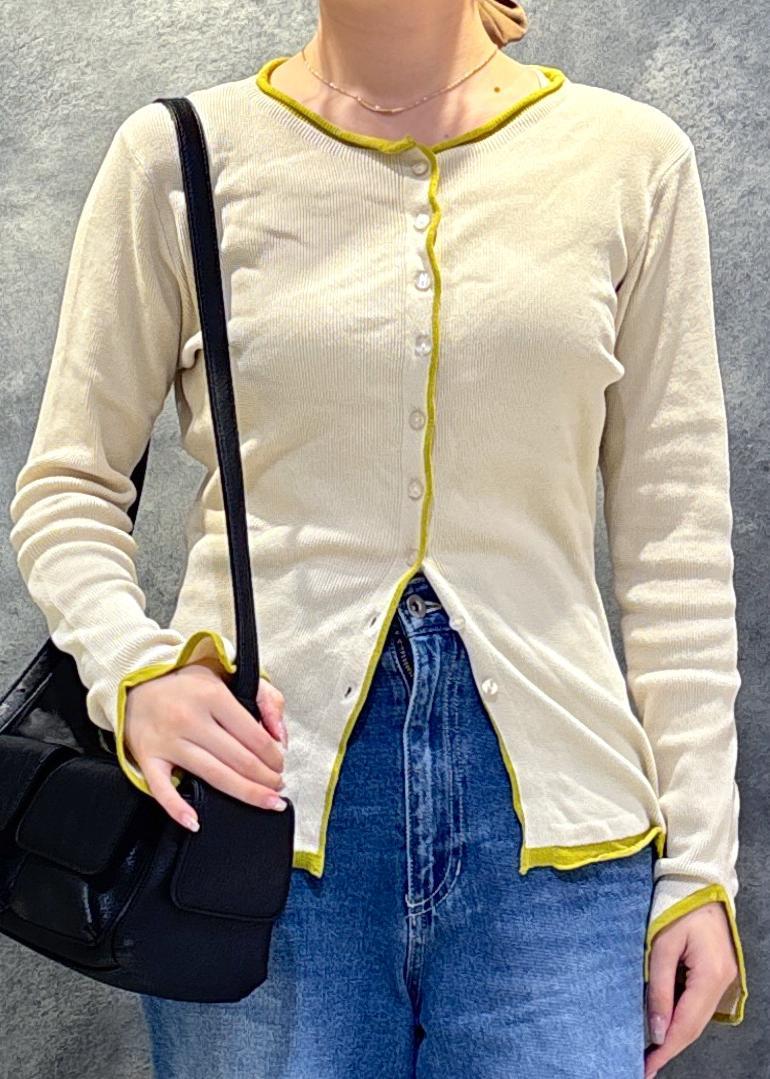VIS【WEB/一部店舗限定】配色メローバイカラーカーディガンベージュ / F¥3,295レビュー身長155センチでおしりが半分隠れる長さです!