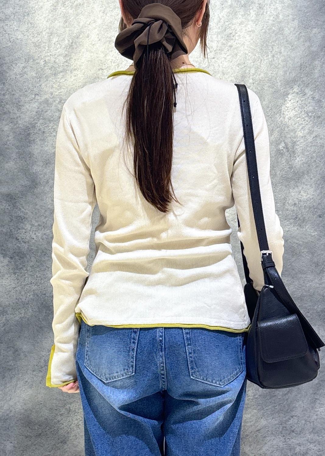 袖が長めなので腕が長く見えて、女性らしい印象になります◎