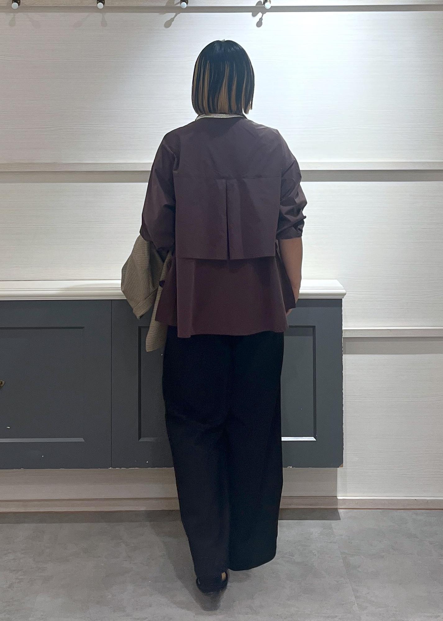 深みのあるダークブラウンのシャツに、