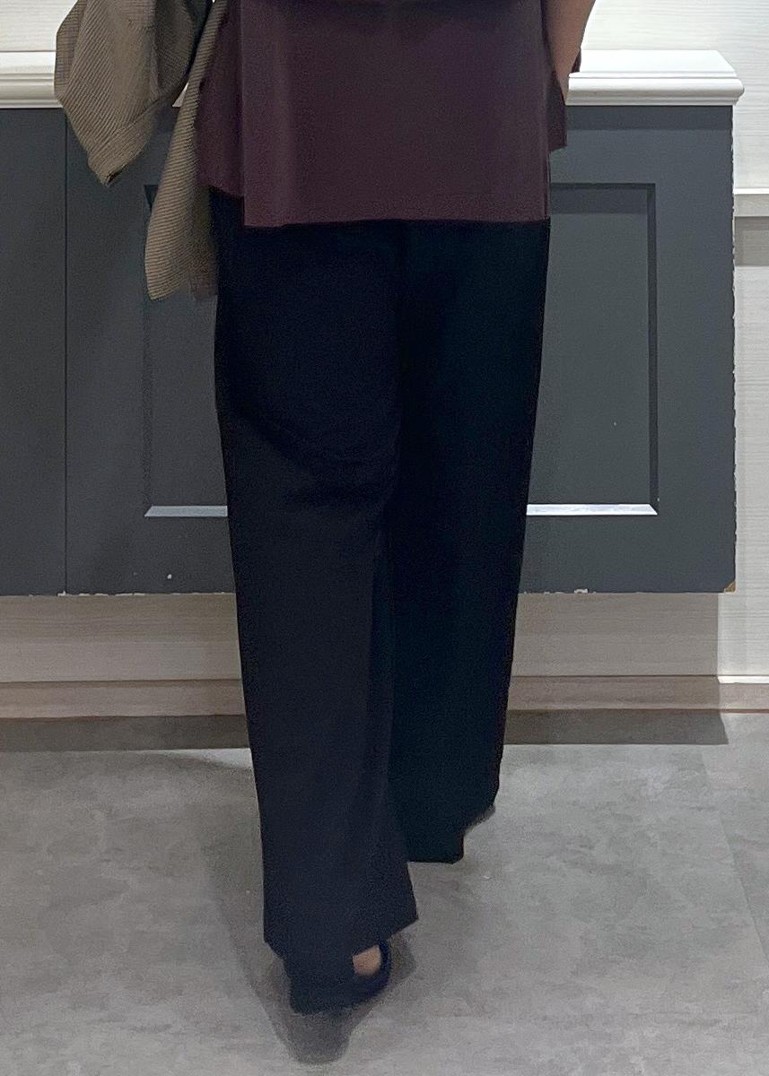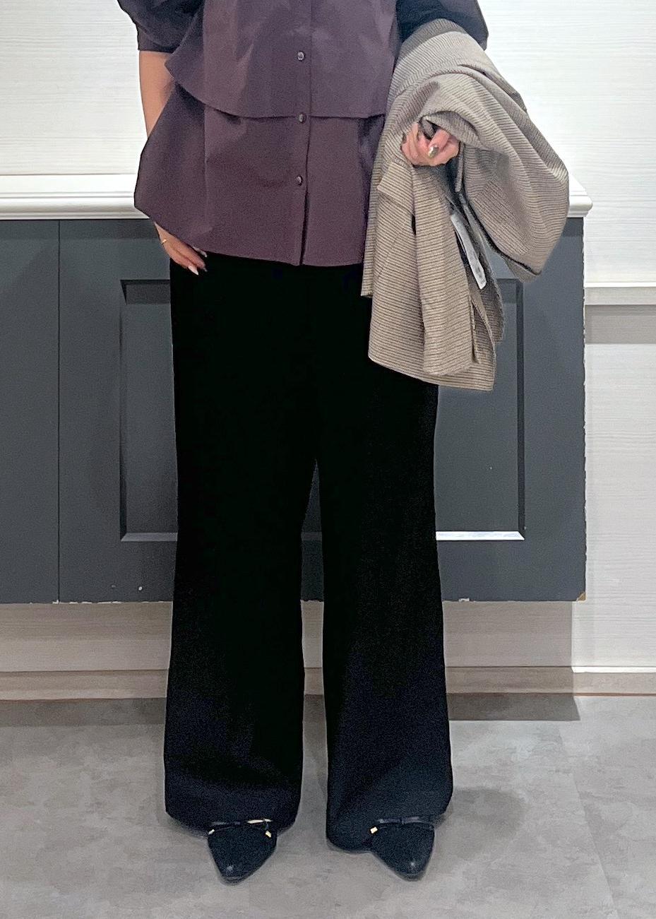 黒のワイドパンツを合わせたシンプルで上品なスタイル☆
