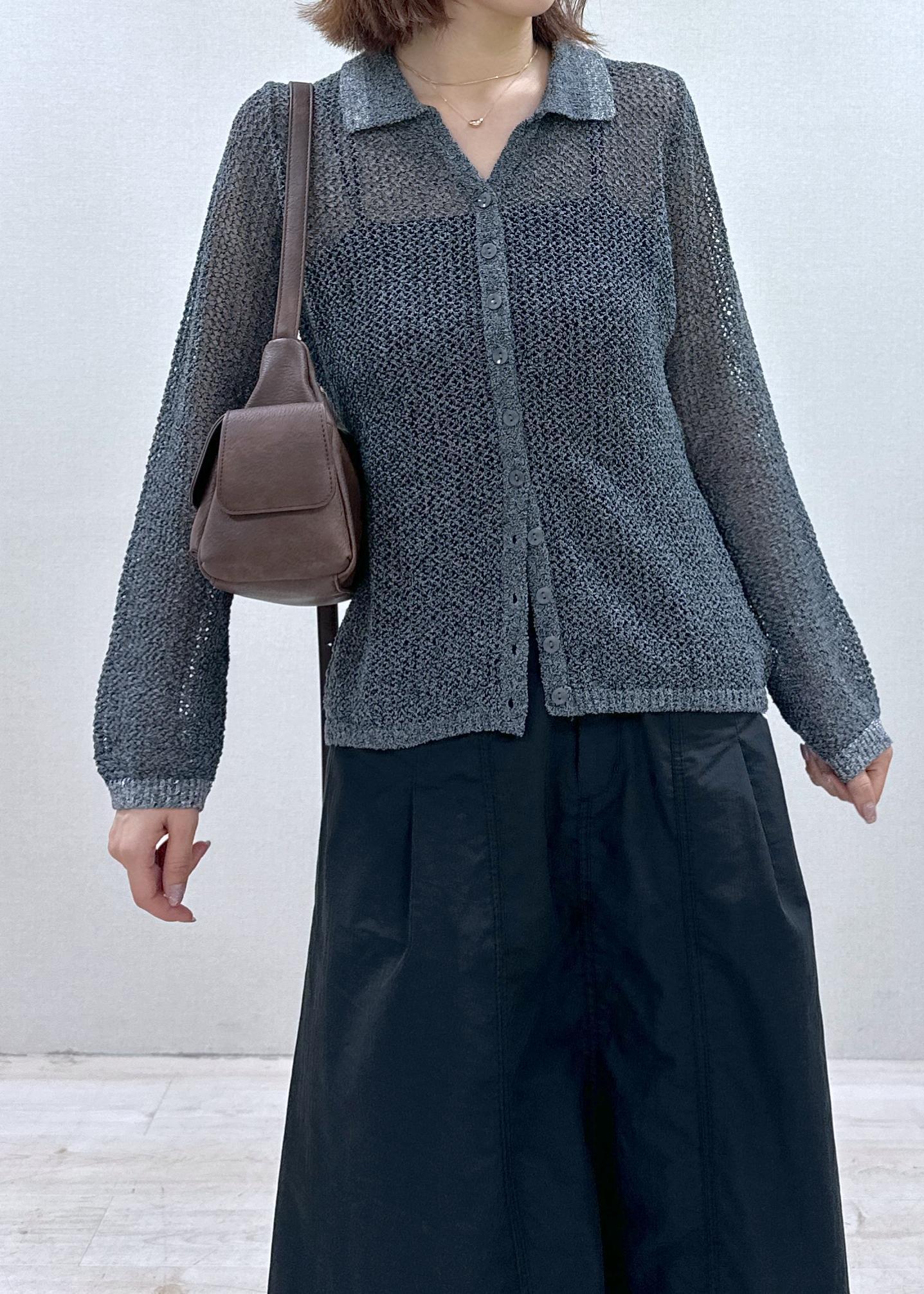 【WEB/一部店舗限定】配色ラメポロ襟カーディガン/美シルエット