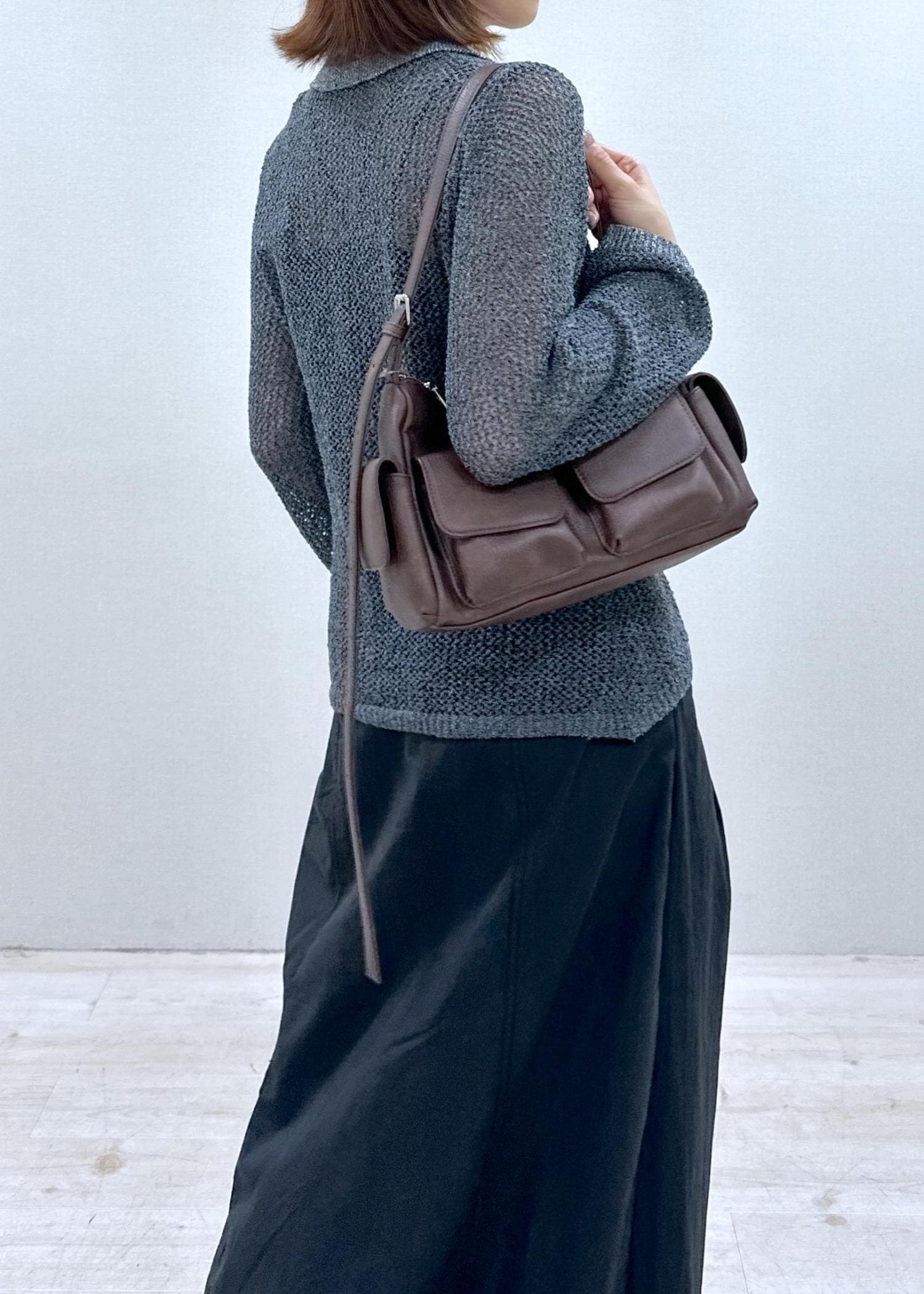 トレンド感のあるマルチポケットのショルダーバッグ。